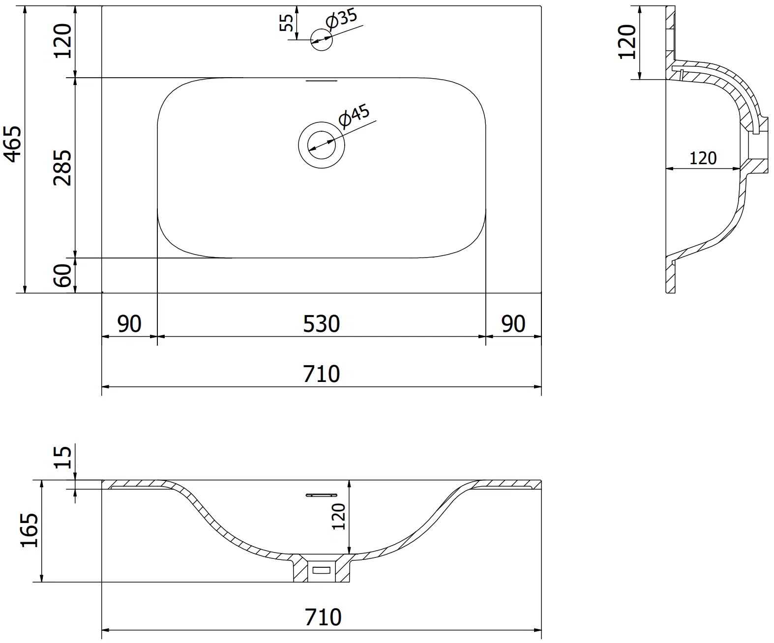 A túlfolyó nyílást "biztonsági nyílásnak" nevezik. Ezen keresztül távozik a felesleges víz, így a víz nem lép ki a termék peremén kívülre, amikor az alsó lefolyó zárva van. Ez egy nagyon biztonságos és praktikus megoldás.
