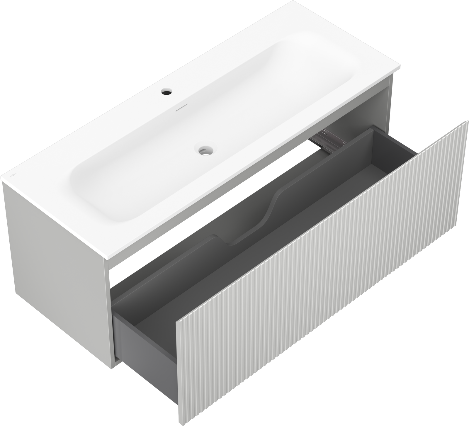 A fiókban lévő kivágás úgy van kialakítva, hogy befogadja a mosdó telepítéseknél szükséges szifont. Ennek köszönhetően a bútor teljesen funkcionálisan felszerelhető anélkül, hogy a fiók terének egy részét fel kellene áldozni a telepítés miatt.