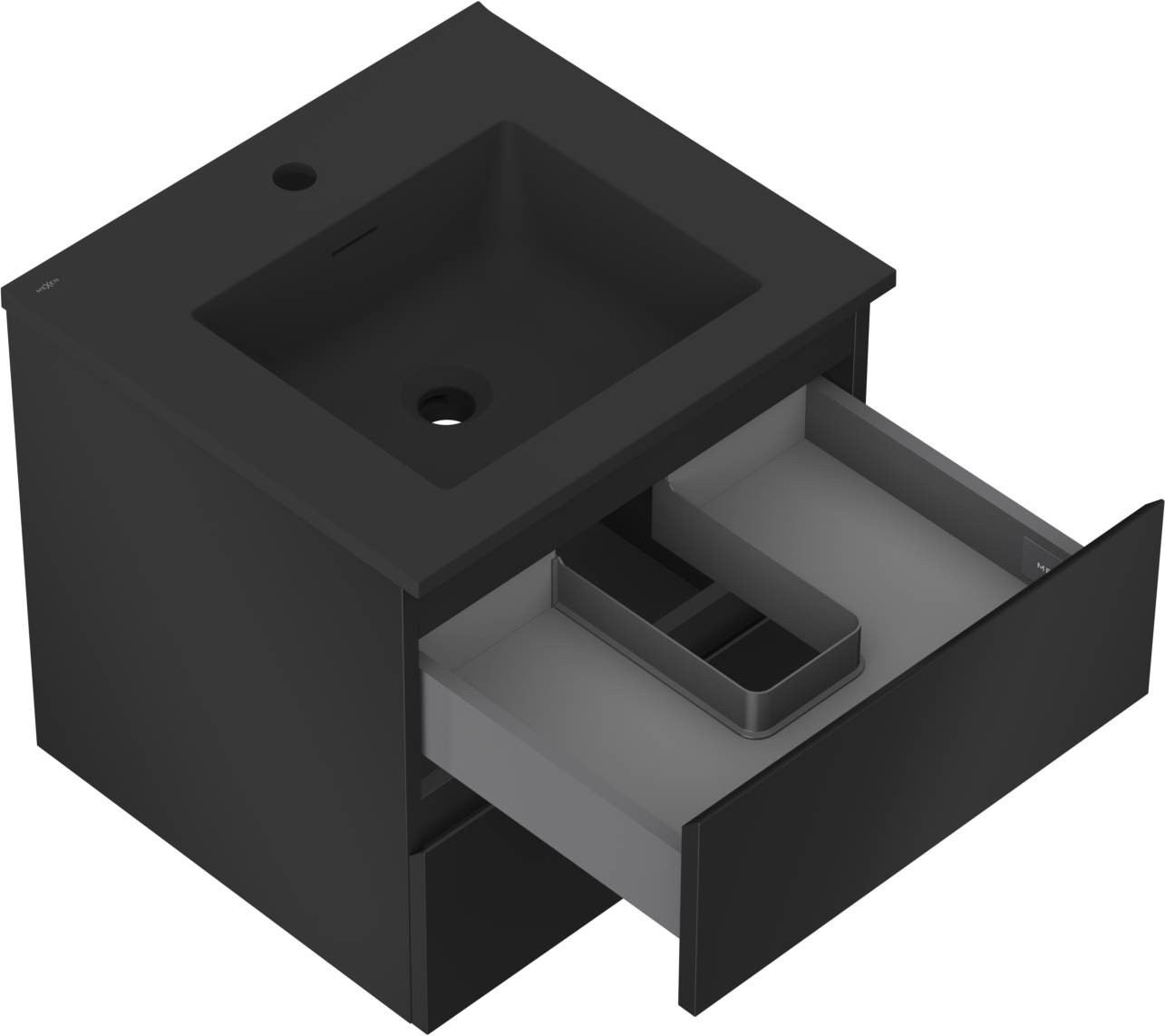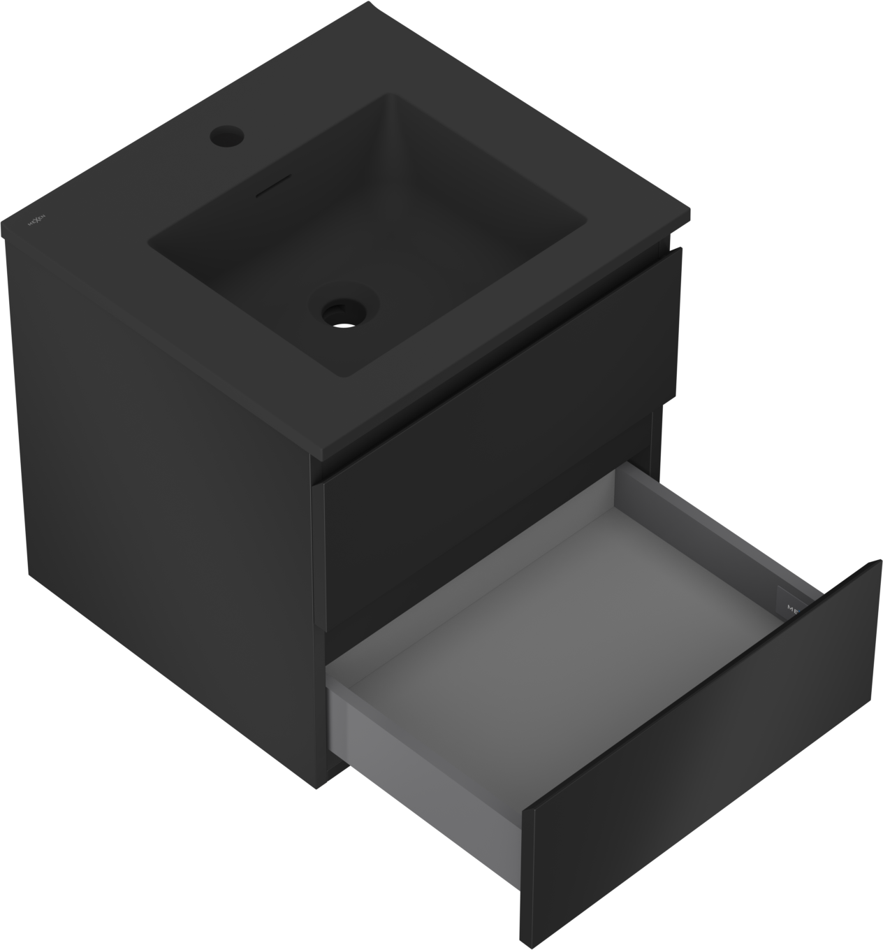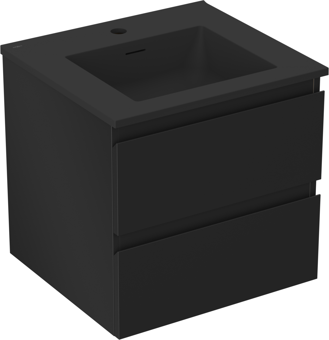 Mexen Orio 50 cm-es fürdőszobai szekrény Otis mosdóval, 2 fiók, fekete matt - 91A10-05047-2-BFF71-W18M71