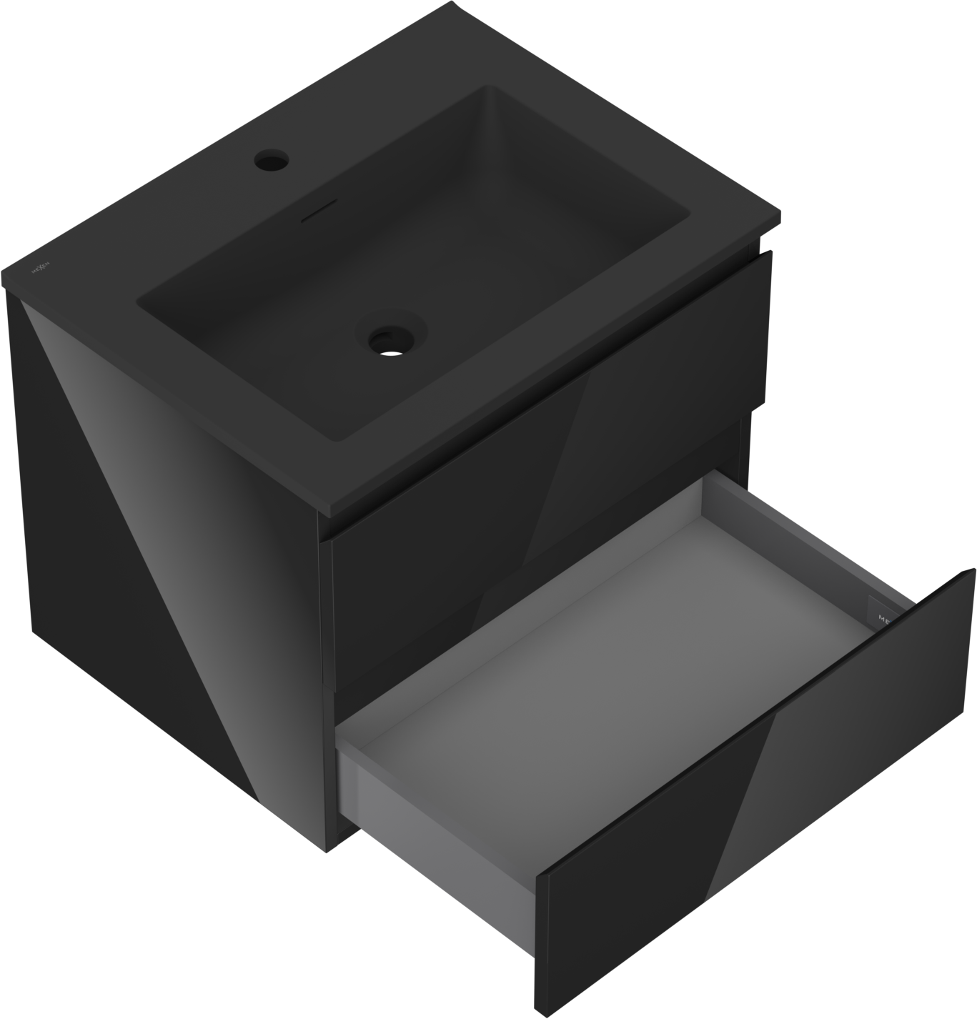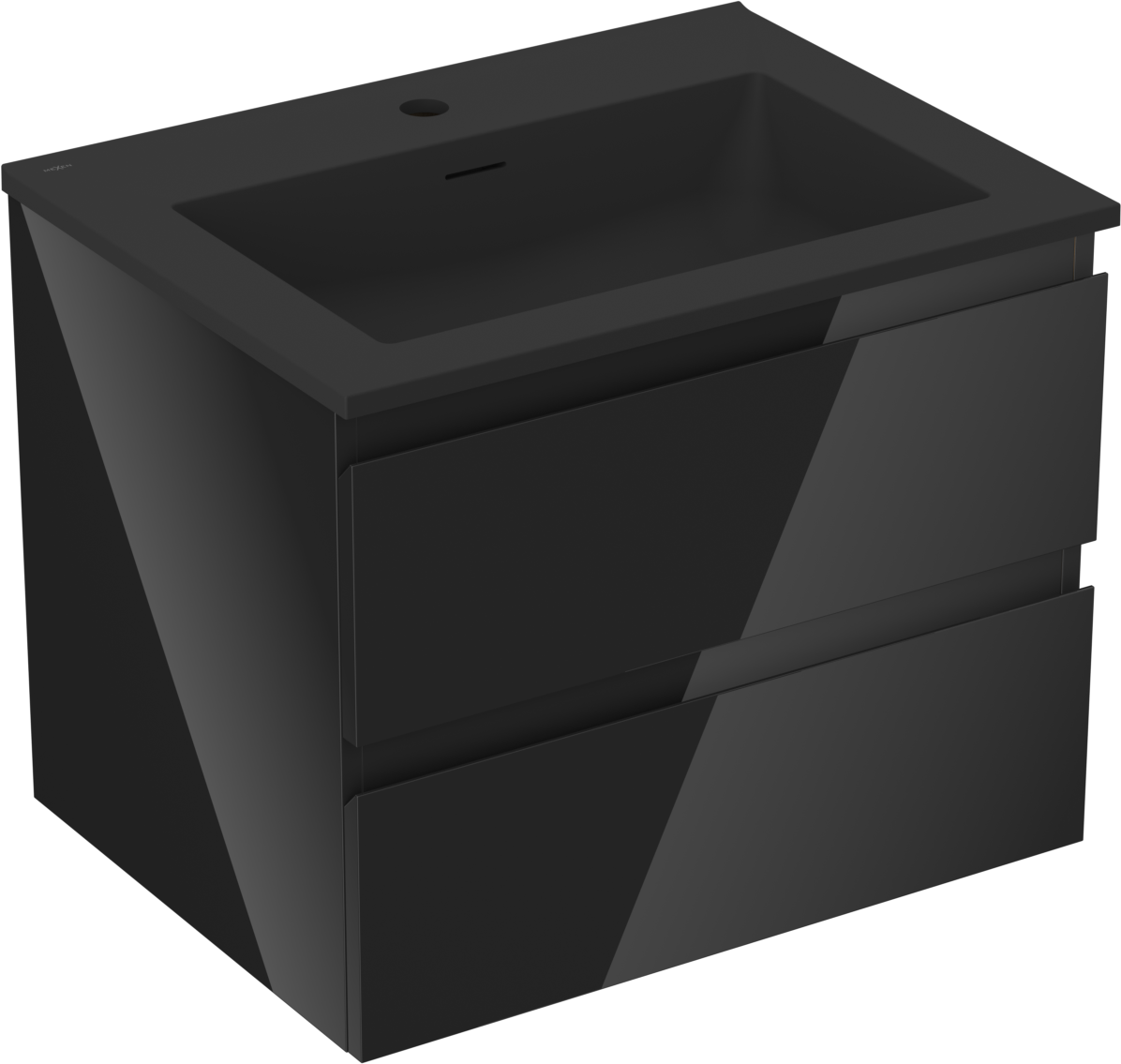 Mexen Orio 60 cm-es fürdőszobaszekrény Otis mosdóval, 2 fiókos, fekete fényes/fekete matt - 91A10-06047-2-BFF70-W18M71