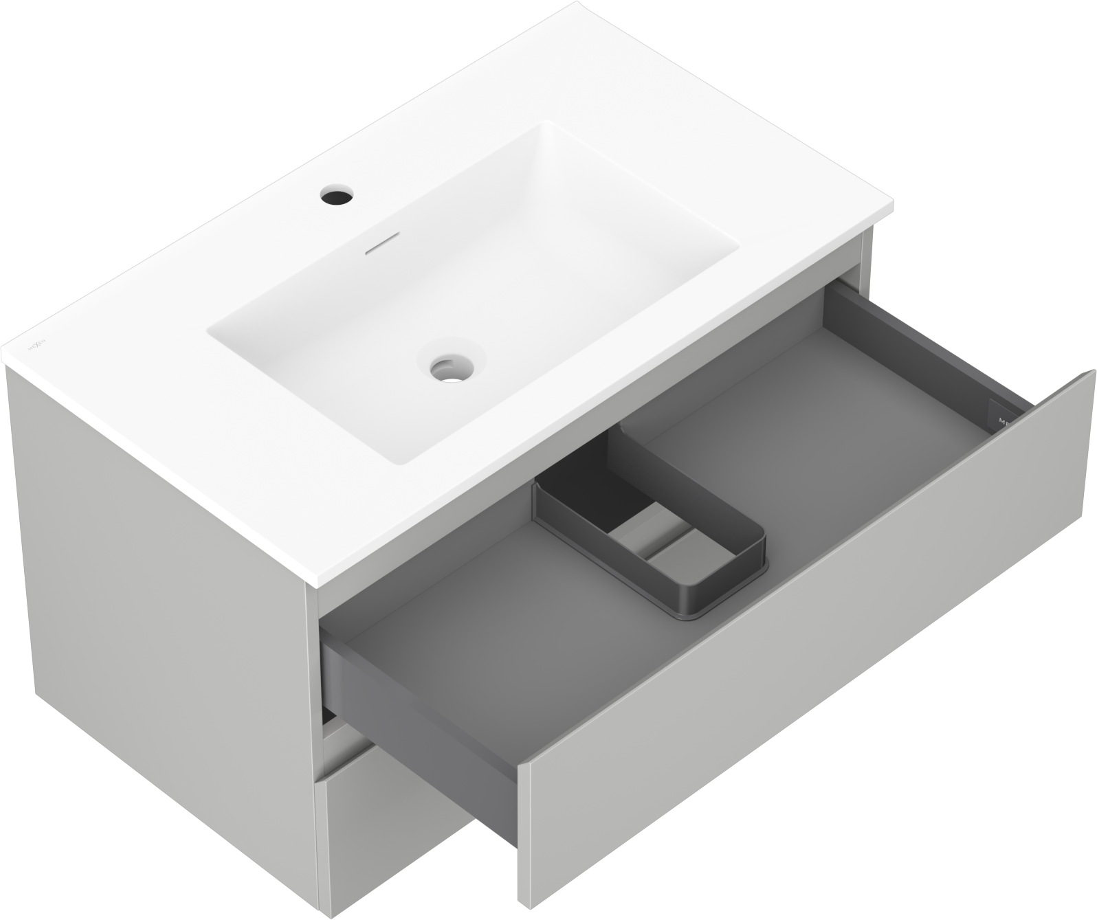 A fiókban lévő kivágás úgy van kialakítva, hogy befogadja a mosdó telepítéseknél szükséges szifont. Ennek köszönhetően a bútor teljesen funkcionálisan felszerelhető anélkül, hogy a fiók terének egy részét fel kellene áldozni a telepítés miatt.
