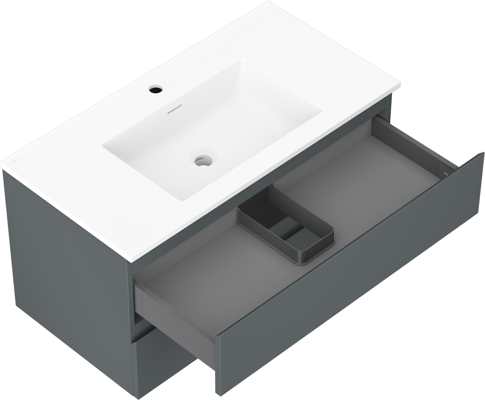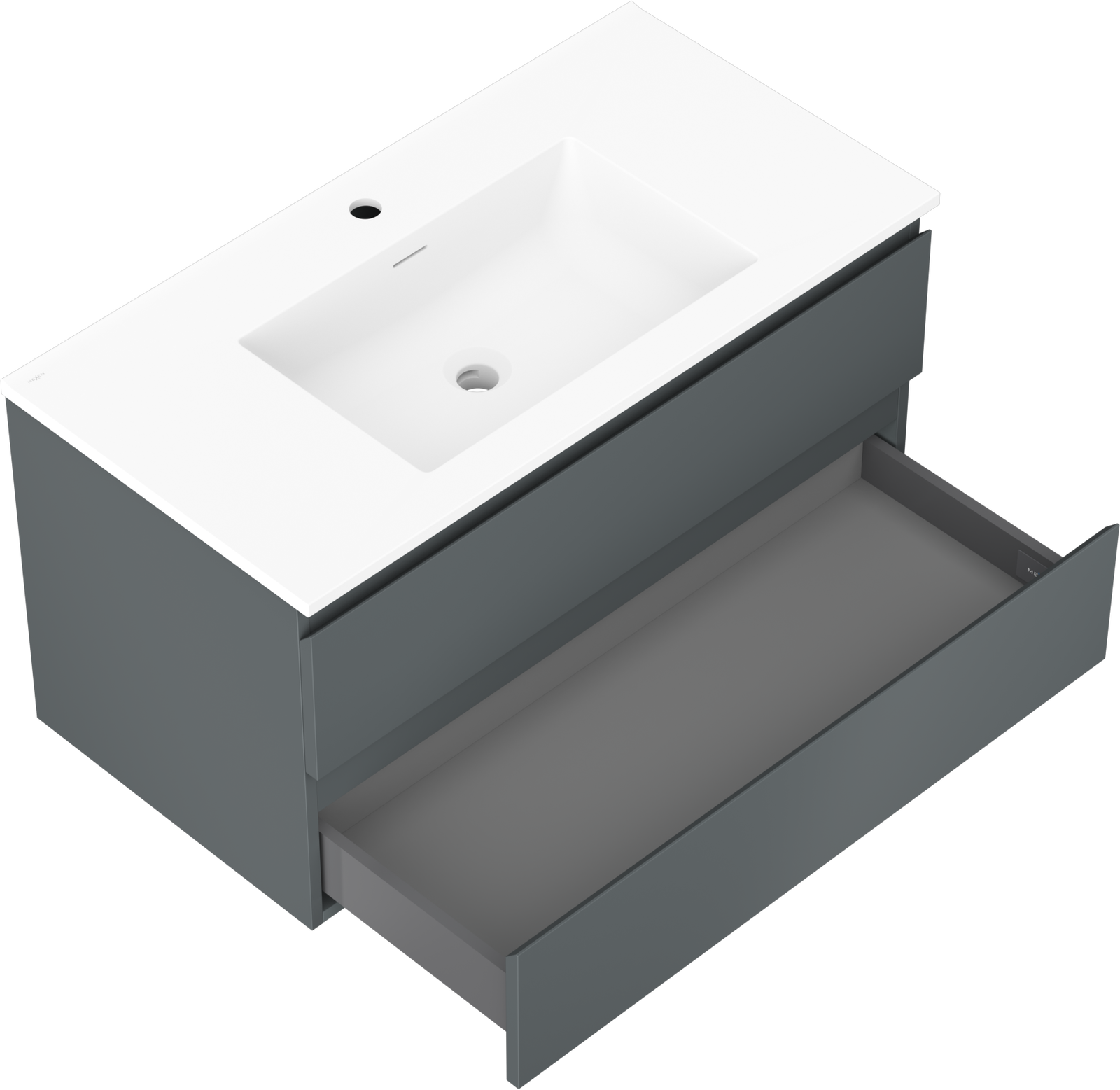 Mexen Orio 90 cm-es fürdőszobai szekrény Otis mosdóval, 2 fiók, grafit matt/fehér matt - 91A10-09047-2-BFF66-W18M01