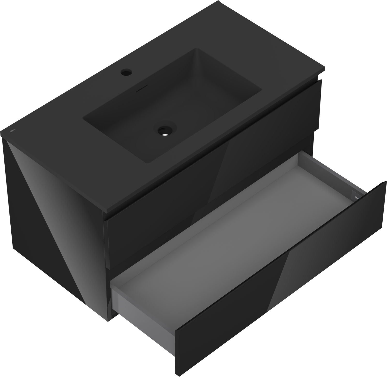 Mexen Orio fürdőszobai szekrény 90 cm-es Otis mosdóval, 2 fiók, fekete fényes/fekete matt - 91A10-09047-2-BFF70-W18M71