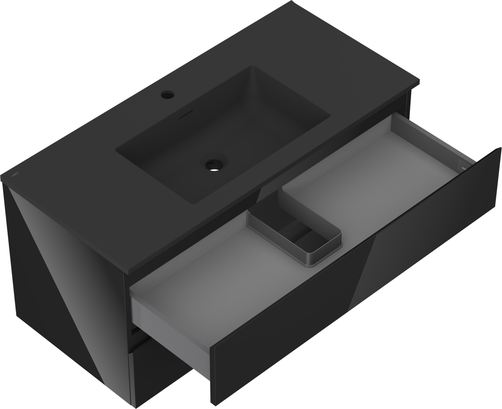 Mexen Orio fürdőszobai szekrény 100 cm mosdóval Otis, 2 fiók, fényes fekete/matt fekete - 91A10-10047-2-BFF70-W18M71
