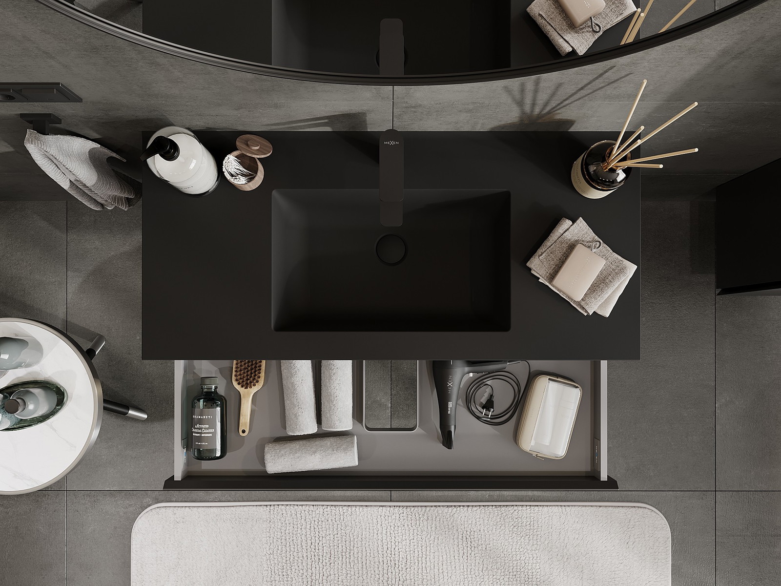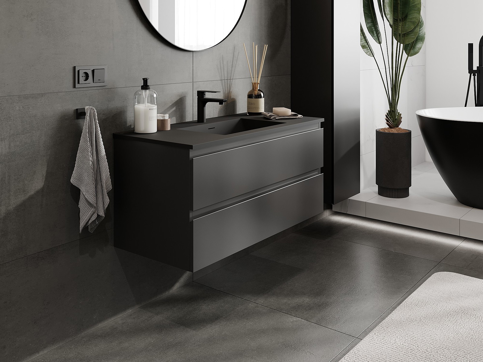 A mosdó színe: Fekete matt