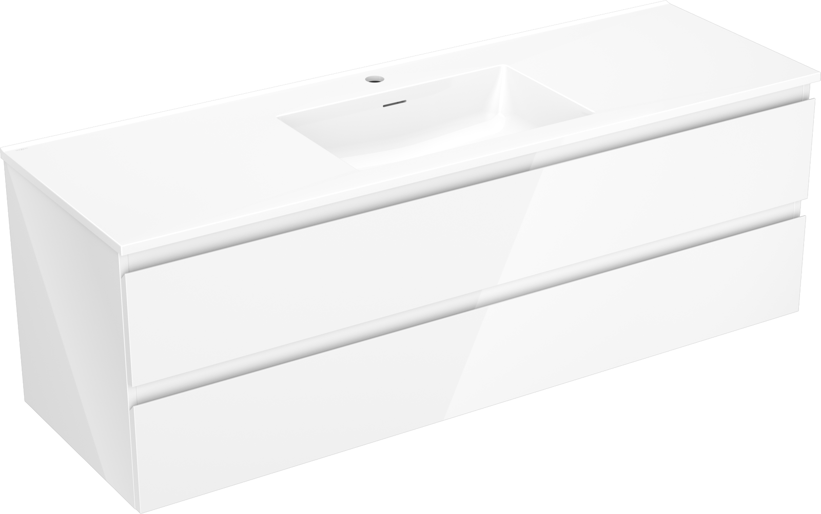 Mexen Orio 140 cm-es fürdőszobai szekrény Otis mosdóval, 2 fiók, fehér fényes - 91A10-14047-2-BFF00-W18M00