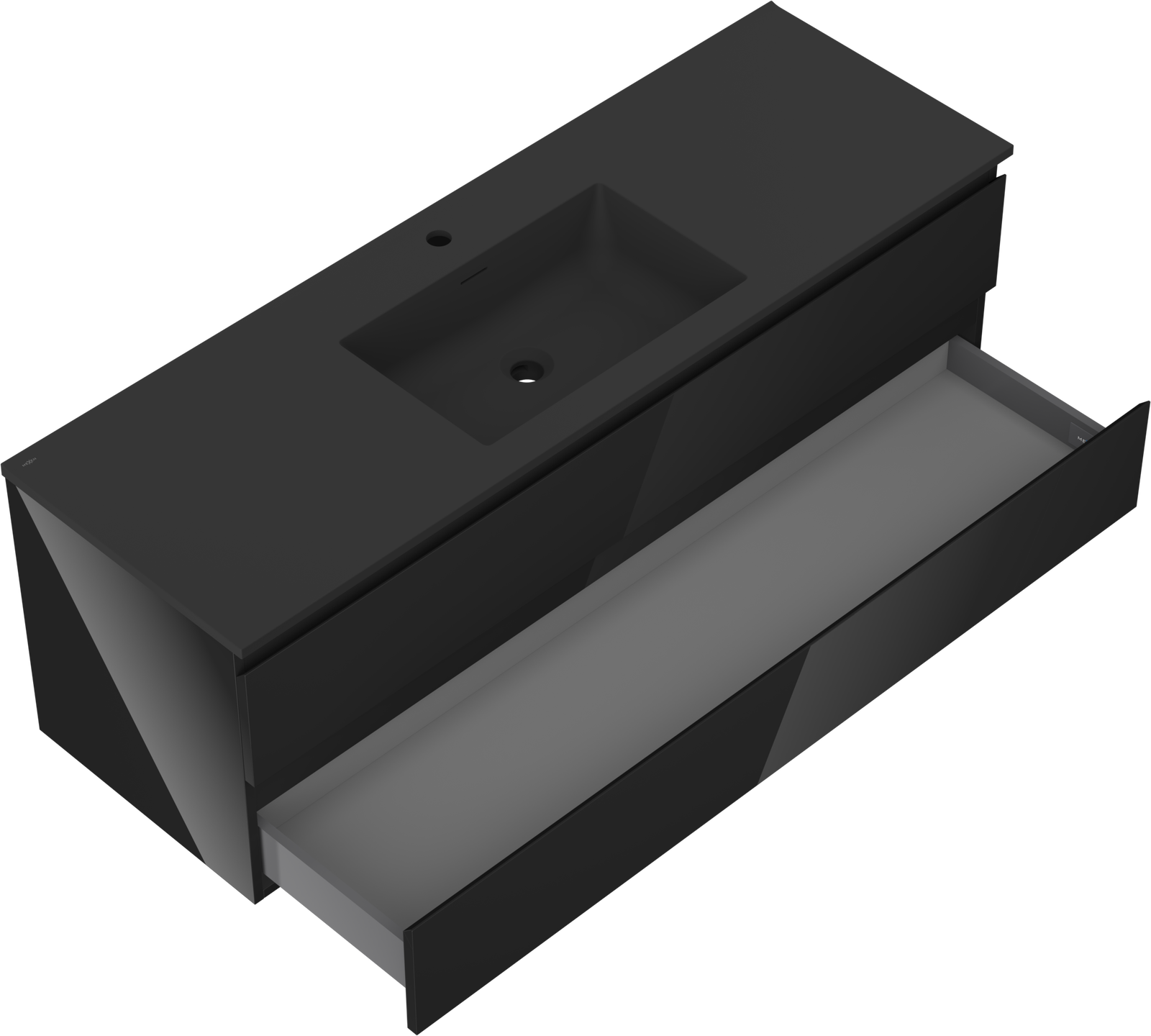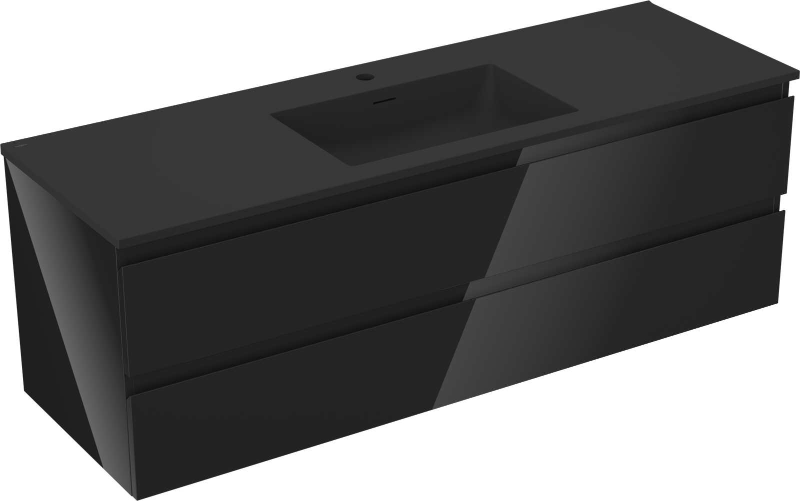 Mexen Orio fürdőszobai szekrény 140 cm Otis mosdóval, 2 fiók, fekete fényes/fekete matt - 91A10-14047-2-BFF70-W18M71