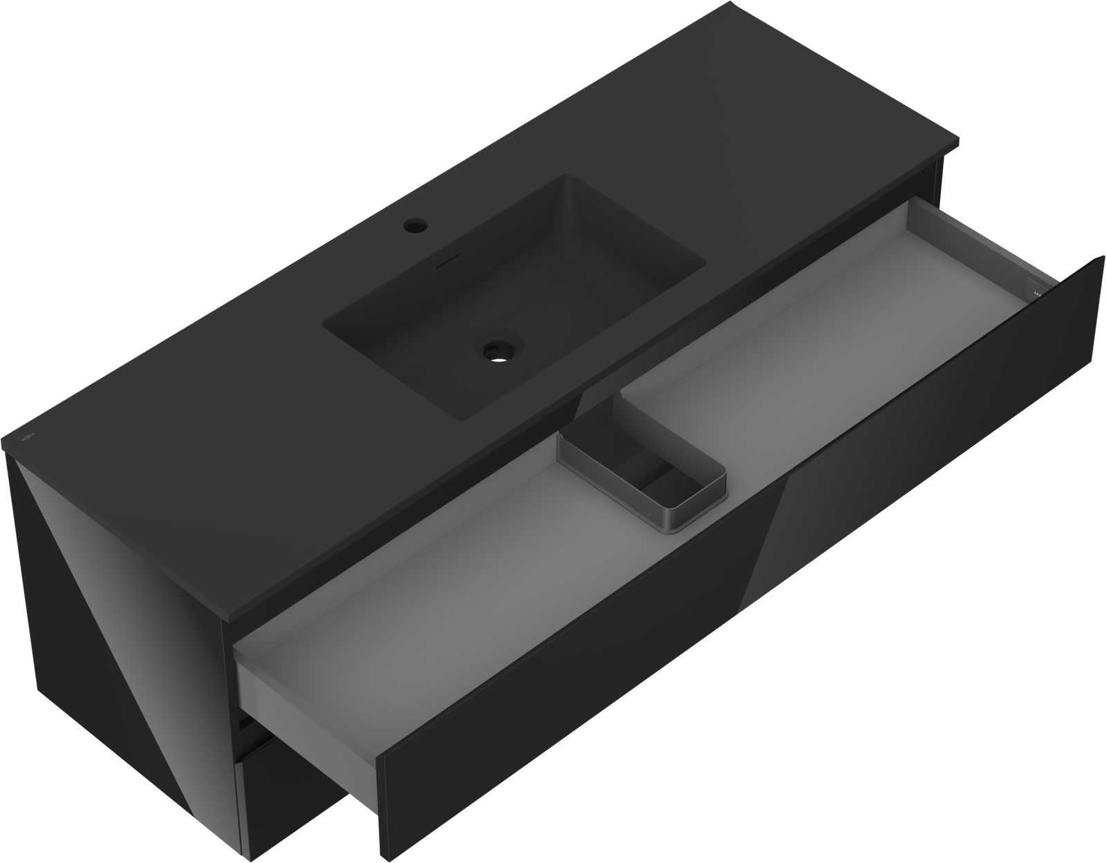 A fiókban lévő kivágás úgy van kialakítva, hogy befogadja a mosdó telepítéseknél szükséges szifont. Ennek köszönhetően a bútor teljesen funkcionálisan felszerelhető anélkül, hogy a fiók terének egy részét fel kellene áldozni a telepítés miatt.