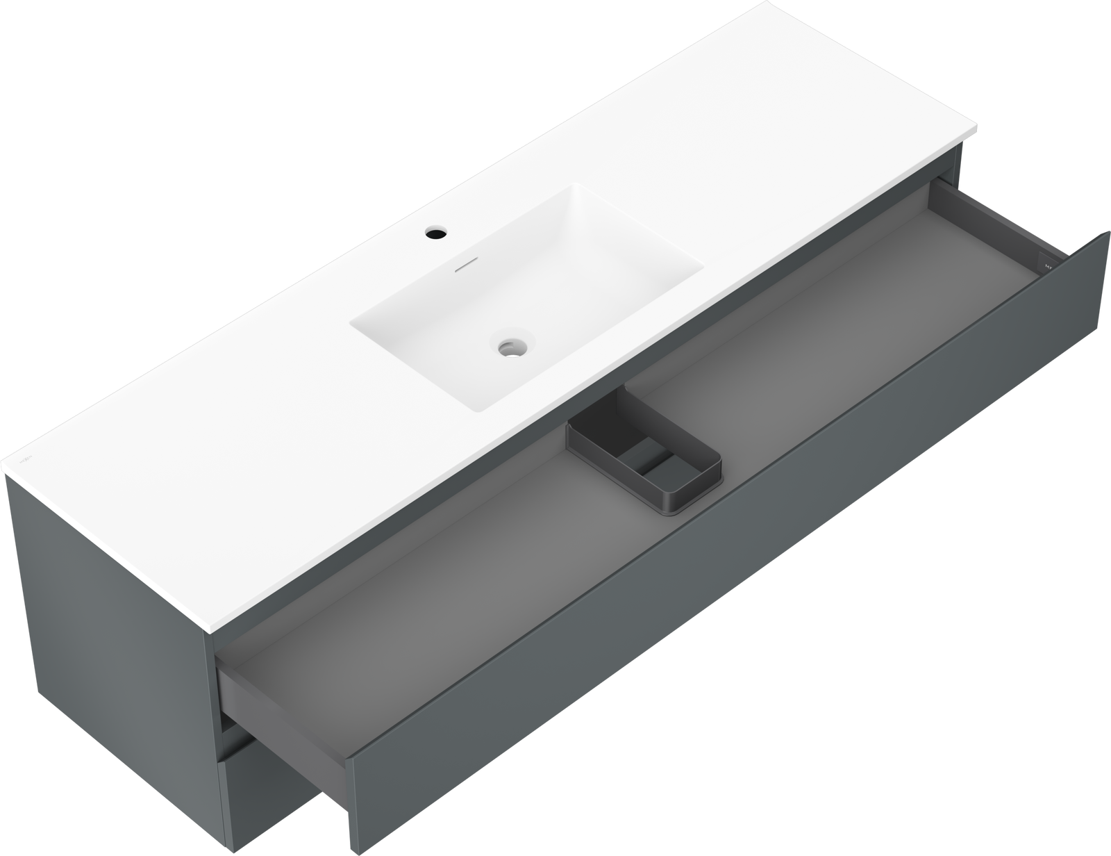 A fiókban lévő kivágás úgy van kialakítva, hogy befogadja a mosdó telepítéseknél szükséges szifont. Ennek köszönhetően a bútor teljesen funkcionálisan felszerelhető anélkül, hogy a fiók terének egy részét fel kellene áldozni a telepítés miatt.