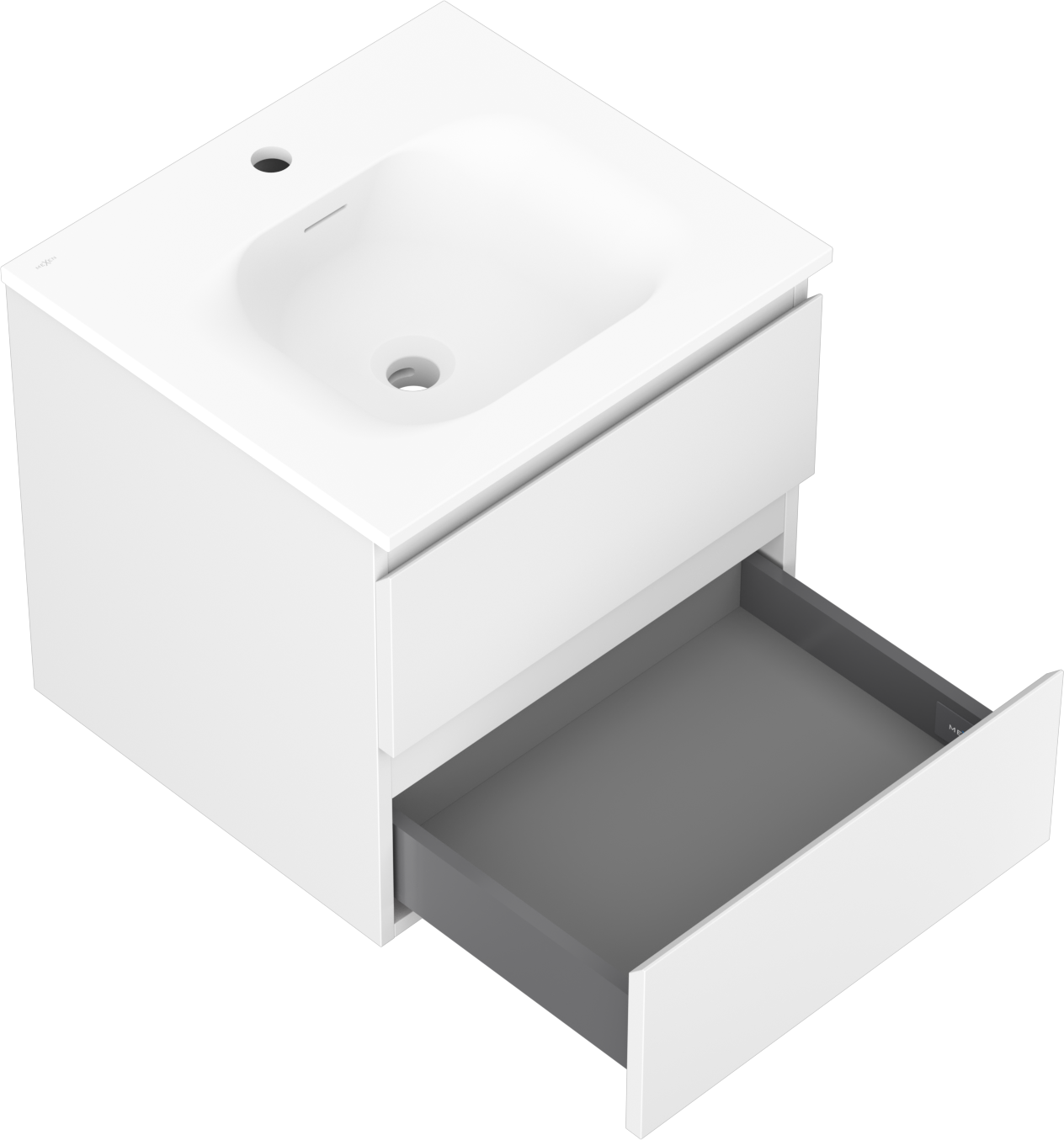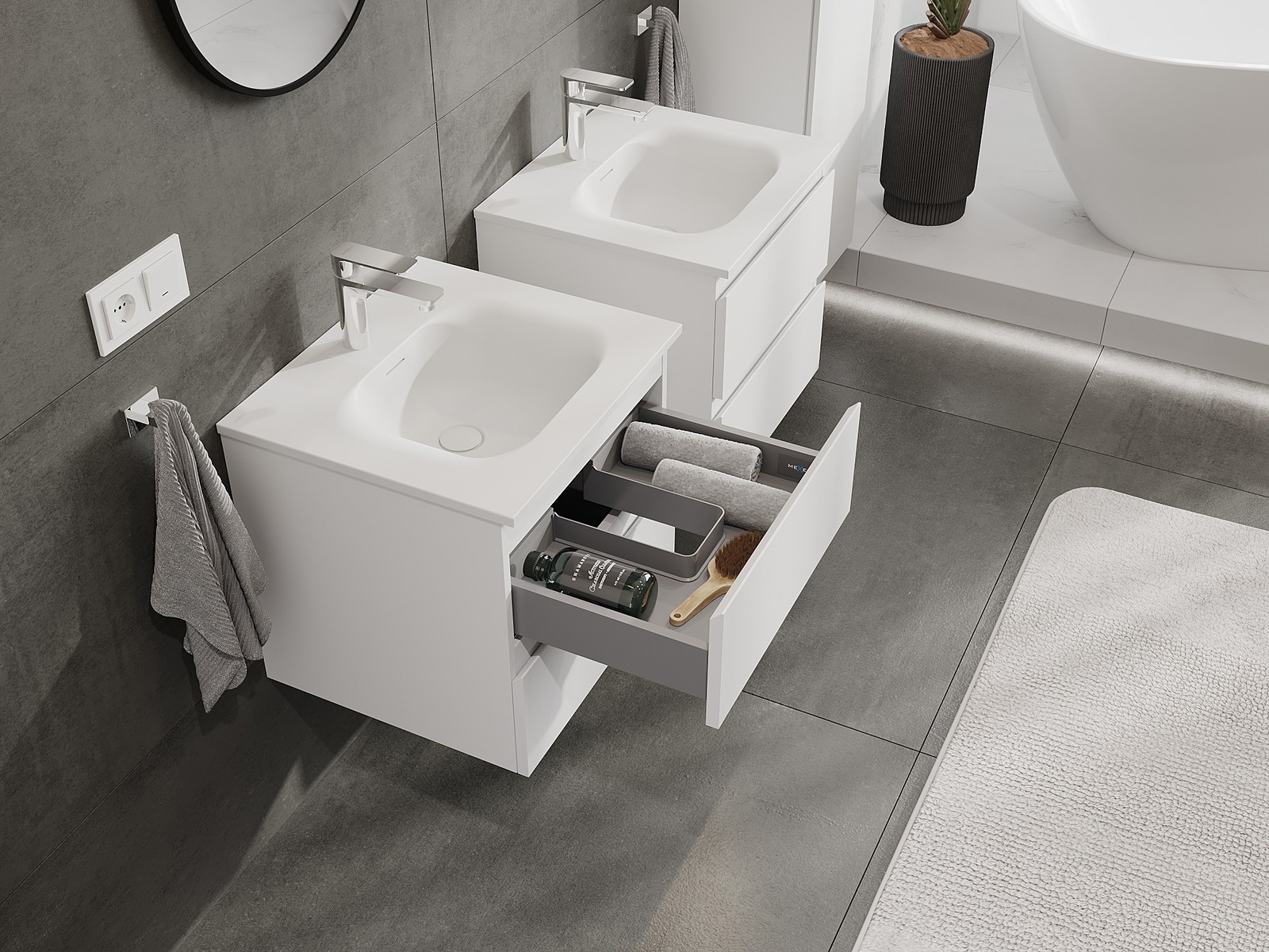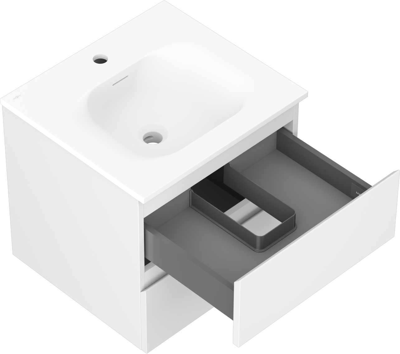A fiókban lévő kivágás úgy van kialakítva, hogy befogadja a mosdó telepítéseknél szükséges szifont. Ennek köszönhetően a bútor teljesen funkcionálisan felszerelhető anélkül, hogy a fiók terének egy részét fel kellene áldozni a telepítés miatt.