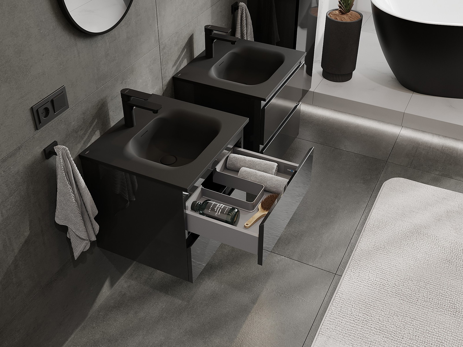 A moduláris fürdőszobabútorainkat különböző színkonfigurációkban lehet kombinálni, lehetővé téve a teljes személyre szabást. Kiválasztható mind az egyes elemek megjelenése, mind pedig funkciói, ami lehetővé teszi a bútorok személyes stílus- és használati preferenciákhoz való igazítását.