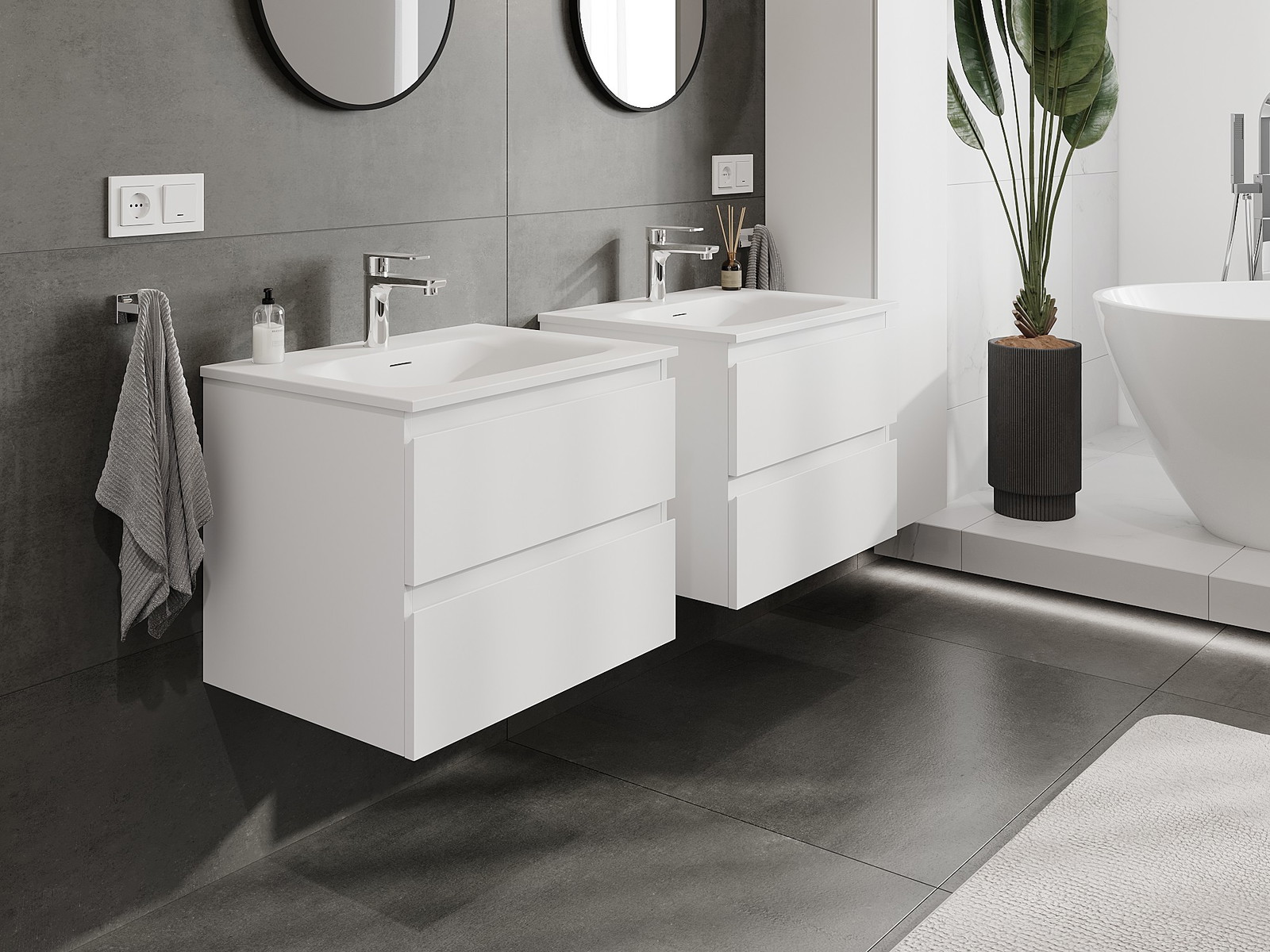 A moduláris fürdőszobabútorainkat különböző színkonfigurációkban lehet kombinálni, lehetővé téve a teljes személyre szabást. Kiválasztható mind az egyes elemek megjelenése, mind pedig funkciói, ami lehetővé teszi a bútorok személyes stílus- és használati preferenciákhoz való igazítását.