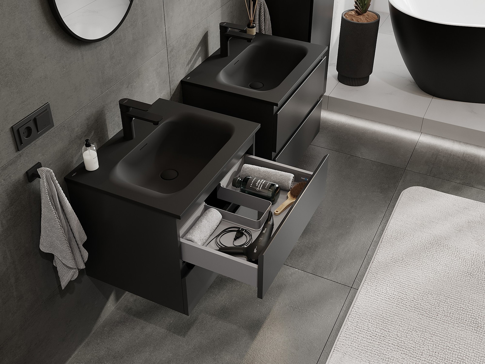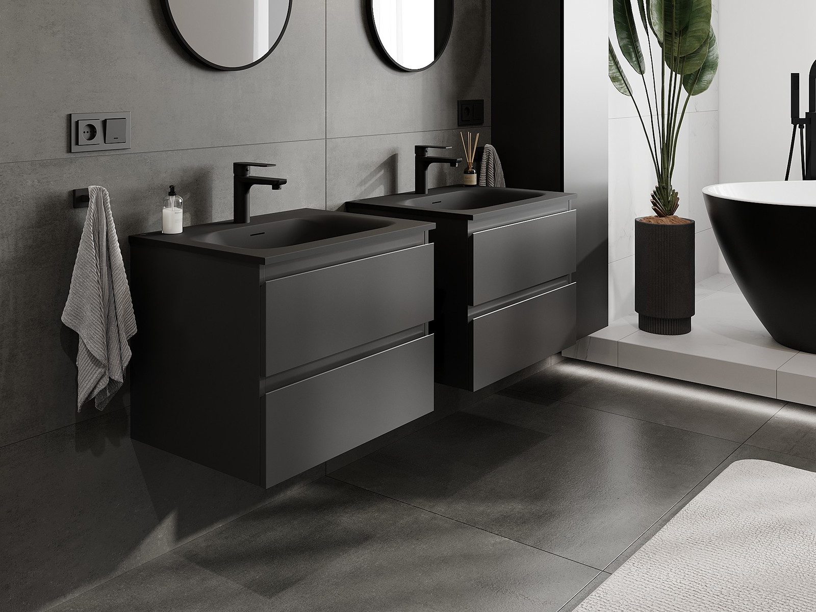 A mosdó színe: Fekete matt