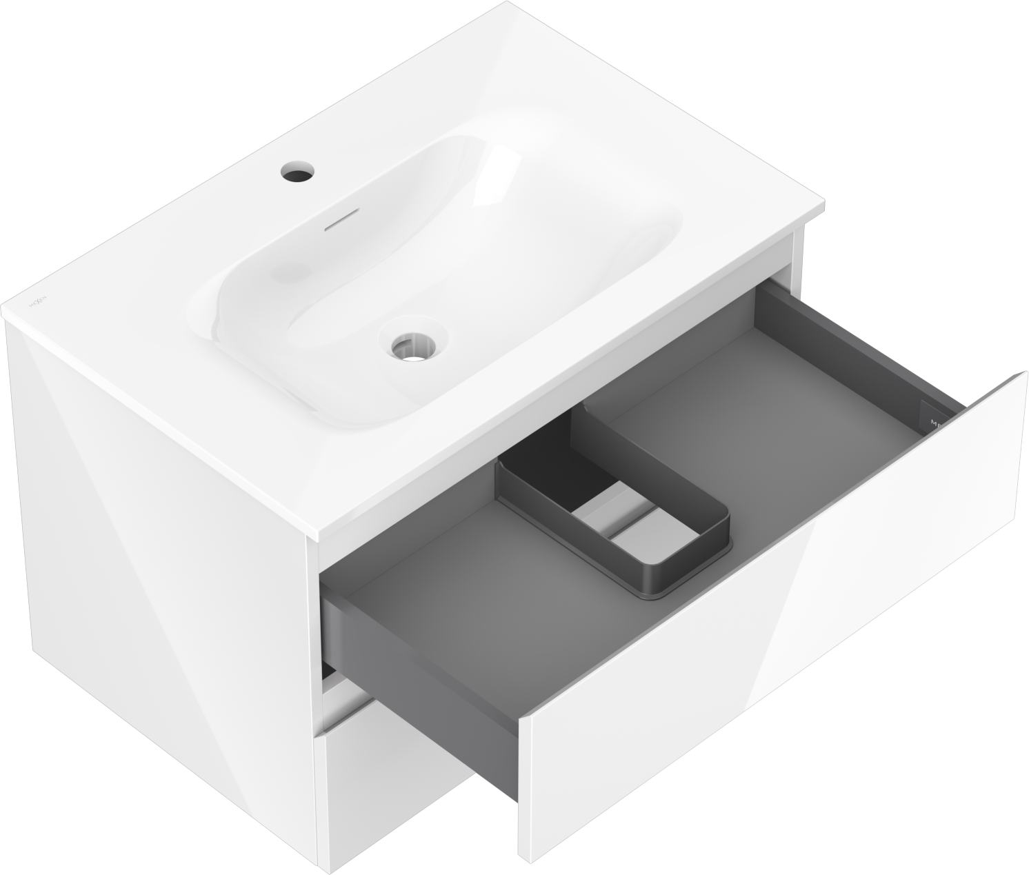 A fiókban lévő kivágás úgy van kialakítva, hogy befogadja a mosdó telepítéseknél szükséges szifont. Ennek köszönhetően a bútor teljesen funkcionálisan felszerelhető anélkül, hogy a fiók terének egy részét fel kellene áldozni a telepítés miatt.
