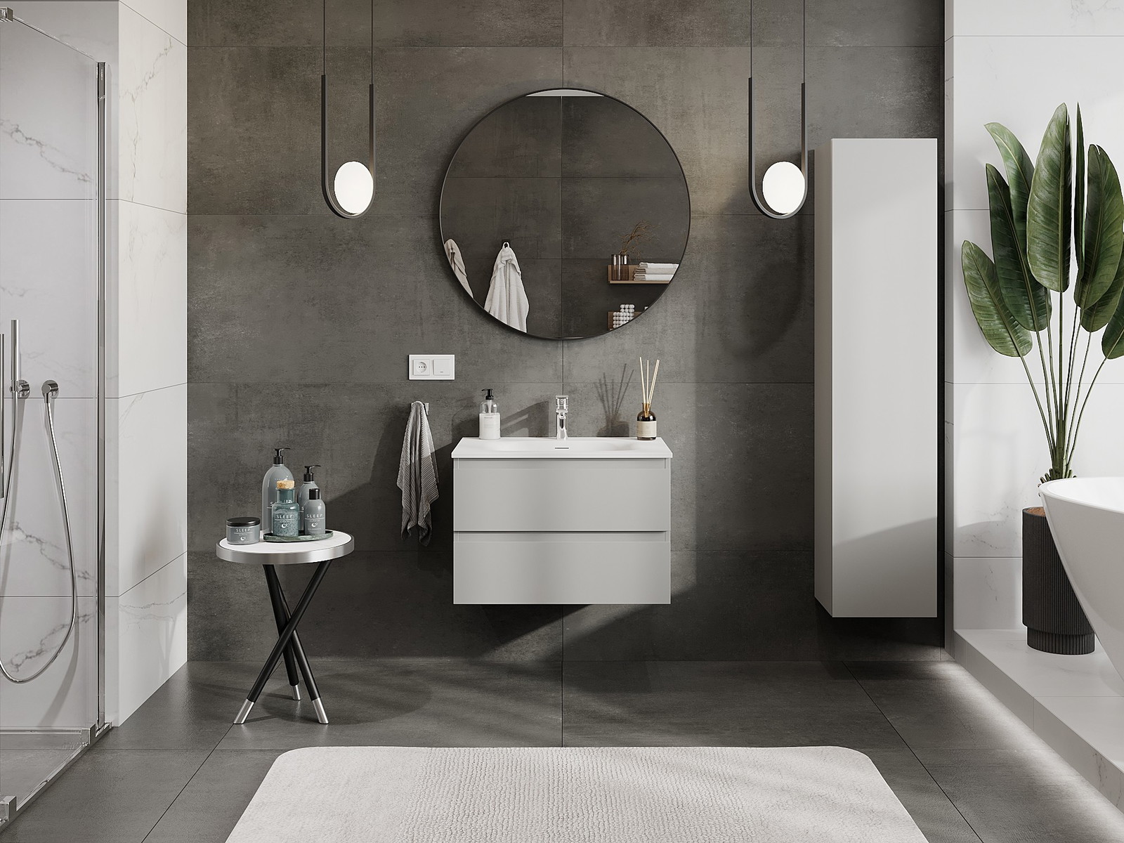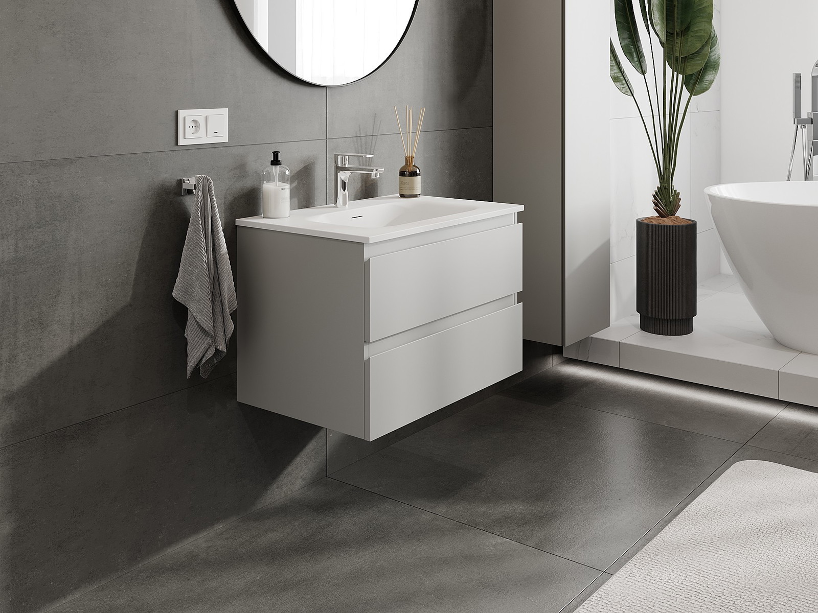 A moduláris fürdőszobabútorainkat különböző színkonfigurációkban lehet kombinálni, lehetővé téve a teljes személyre szabást. Kiválasztható mind az egyes elemek megjelenése, mind pedig funkciói, ami lehetővé teszi a bútorok személyes stílus- és használati preferenciákhoz való igazítását.