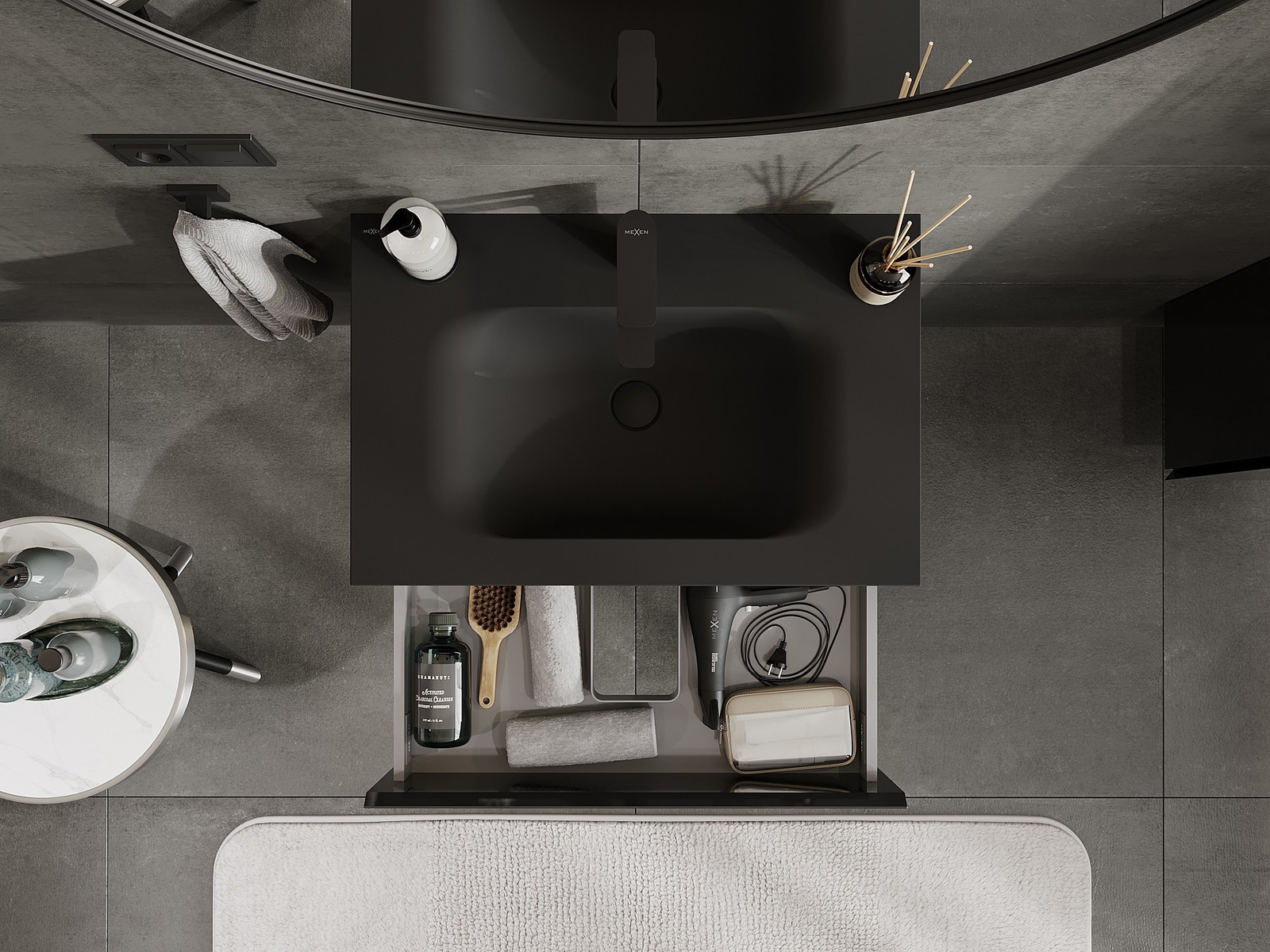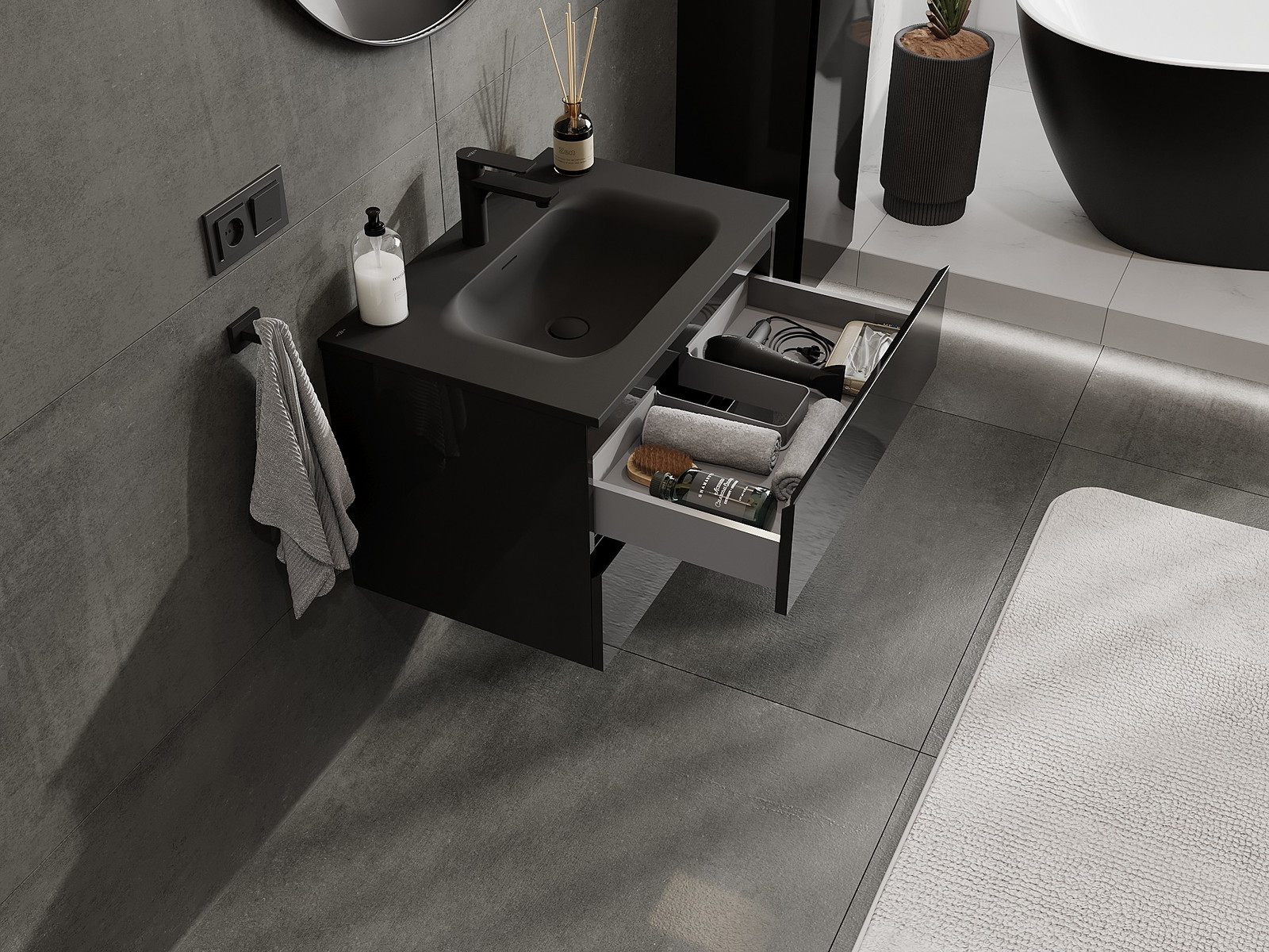 A mosdó színe: Fekete matt