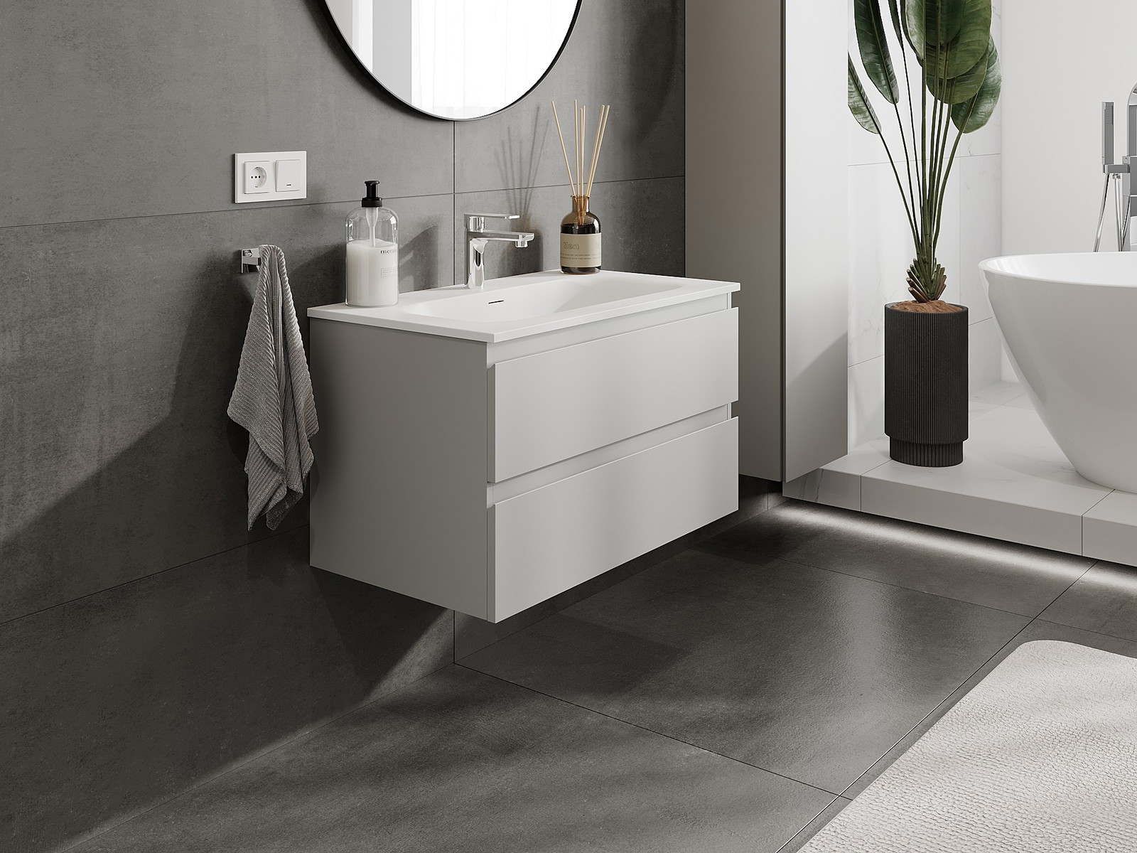 A moduláris fürdőszobabútorainkat különböző színkonfigurációkban lehet kombinálni, lehetővé téve a teljes személyre szabást. Kiválasztható mind az egyes elemek megjelenése, mind pedig funkciói, ami lehetővé teszi a bútorok személyes stílus- és használati preferenciákhoz való igazítását.