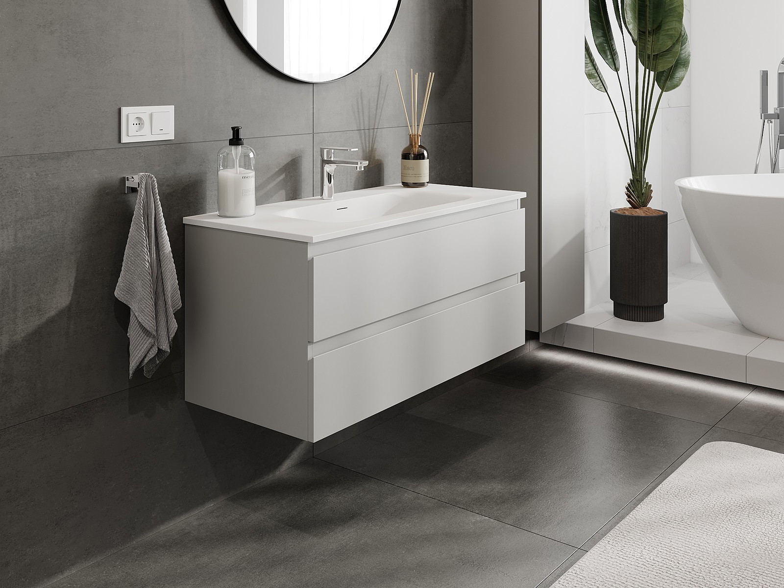 A moduláris fürdőszobabútorainkat különböző színkonfigurációkban lehet kombinálni, lehetővé téve a teljes személyre szabást. Kiválasztható mind az egyes elemek megjelenése, mind pedig funkciói, ami lehetővé teszi a bútorok személyes stílus- és használati preferenciákhoz való igazítását.