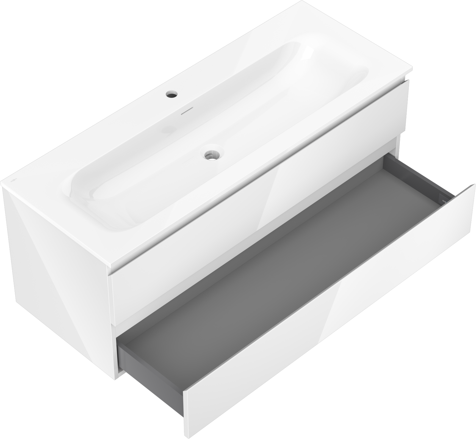 A fiókban lévő kivágás úgy van kialakítva, hogy befogadja a mosdó telepítéseknél szükséges szifont. Ennek köszönhetően a bútor teljesen funkcionálisan felszerelhető anélkül, hogy a fiók terének egy részét fel kellene áldozni a telepítés miatt.