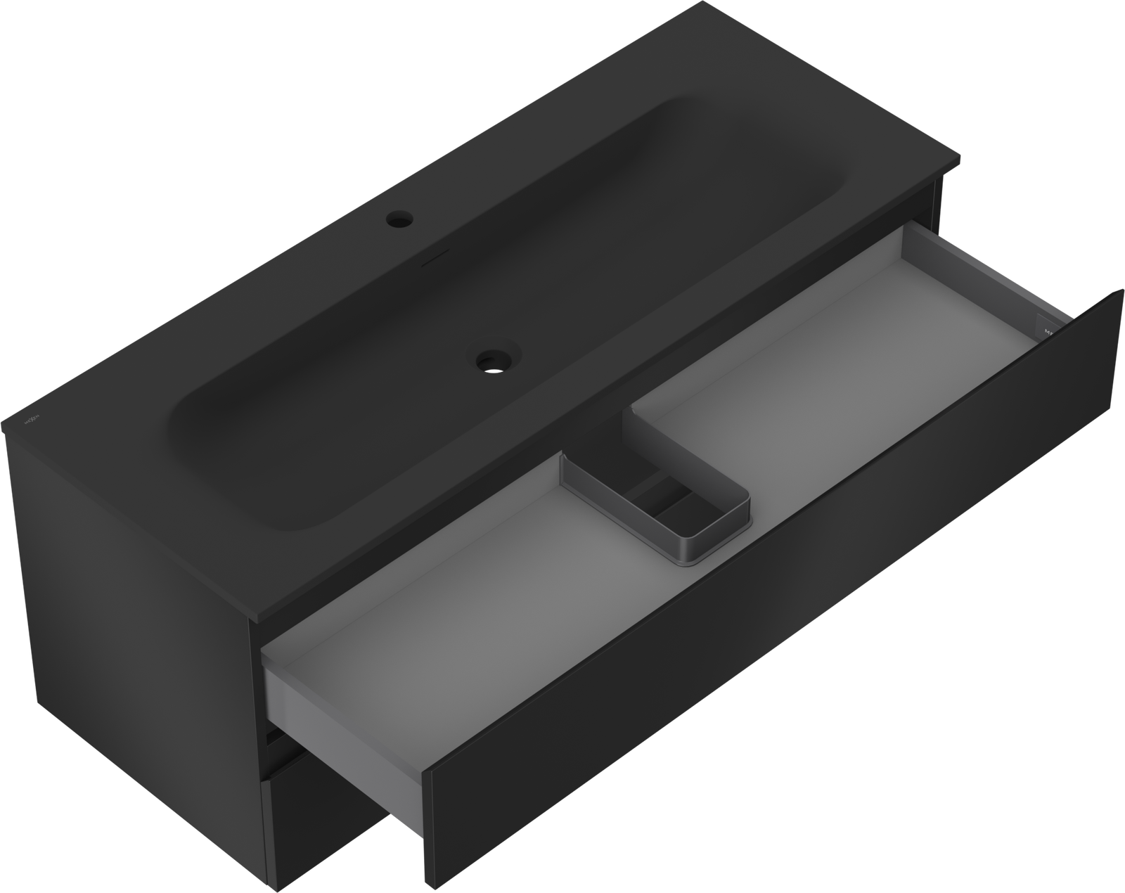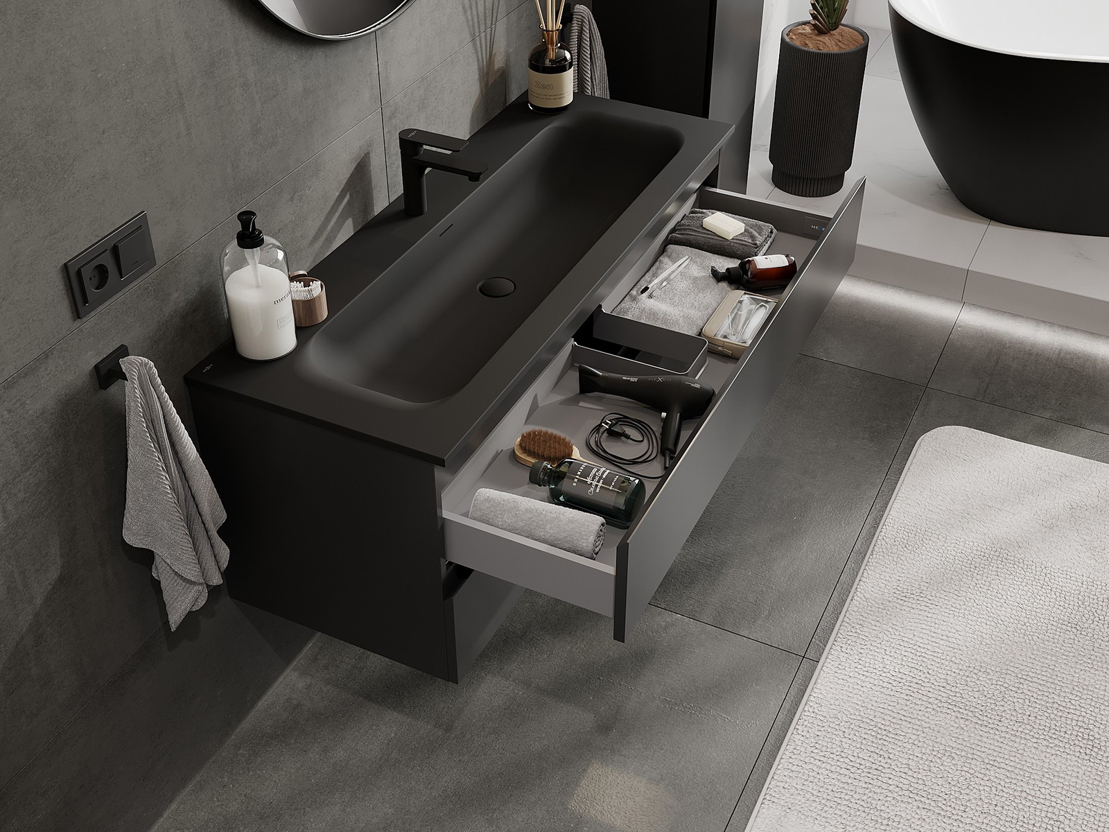 A fiókban lévő kivágás úgy van kialakítva, hogy befogadja a mosdó telepítéseknél szükséges szifont. Ennek köszönhetően a bútor teljesen funkcionálisan felszerelhető anélkül, hogy a fiók terének egy részét fel kellene áldozni a telepítés miatt.
