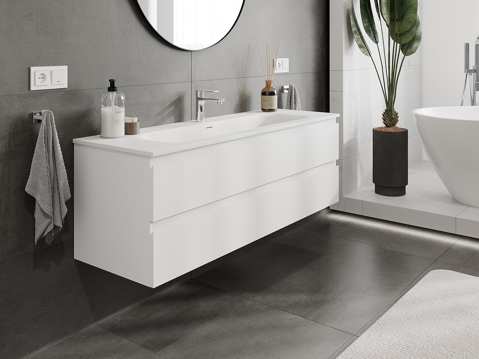 A moduláris fürdőszobabútorainkat különböző színkonfigurációkban lehet kombinálni, lehetővé téve a teljes személyre szabást. Kiválasztható mind az egyes elemek megjelenése, mind pedig funkciói, ami lehetővé teszi a bútorok személyes stílus- és használati preferenciákhoz való igazítását.