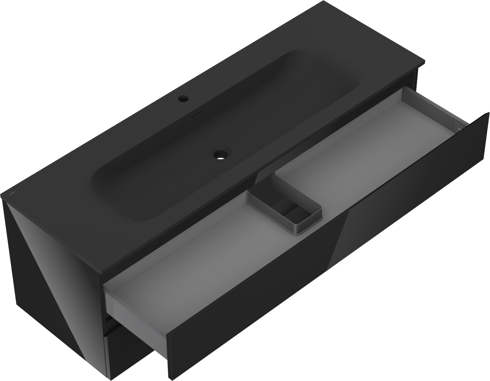 A fiókban lévő kivágás úgy van kialakítva, hogy befogadja a mosdó telepítéseknél szükséges szifont. Ennek köszönhetően a bútor teljesen funkcionálisan felszerelhető anélkül, hogy a fiók terének egy részét fel kellene áldozni a telepítés miatt.