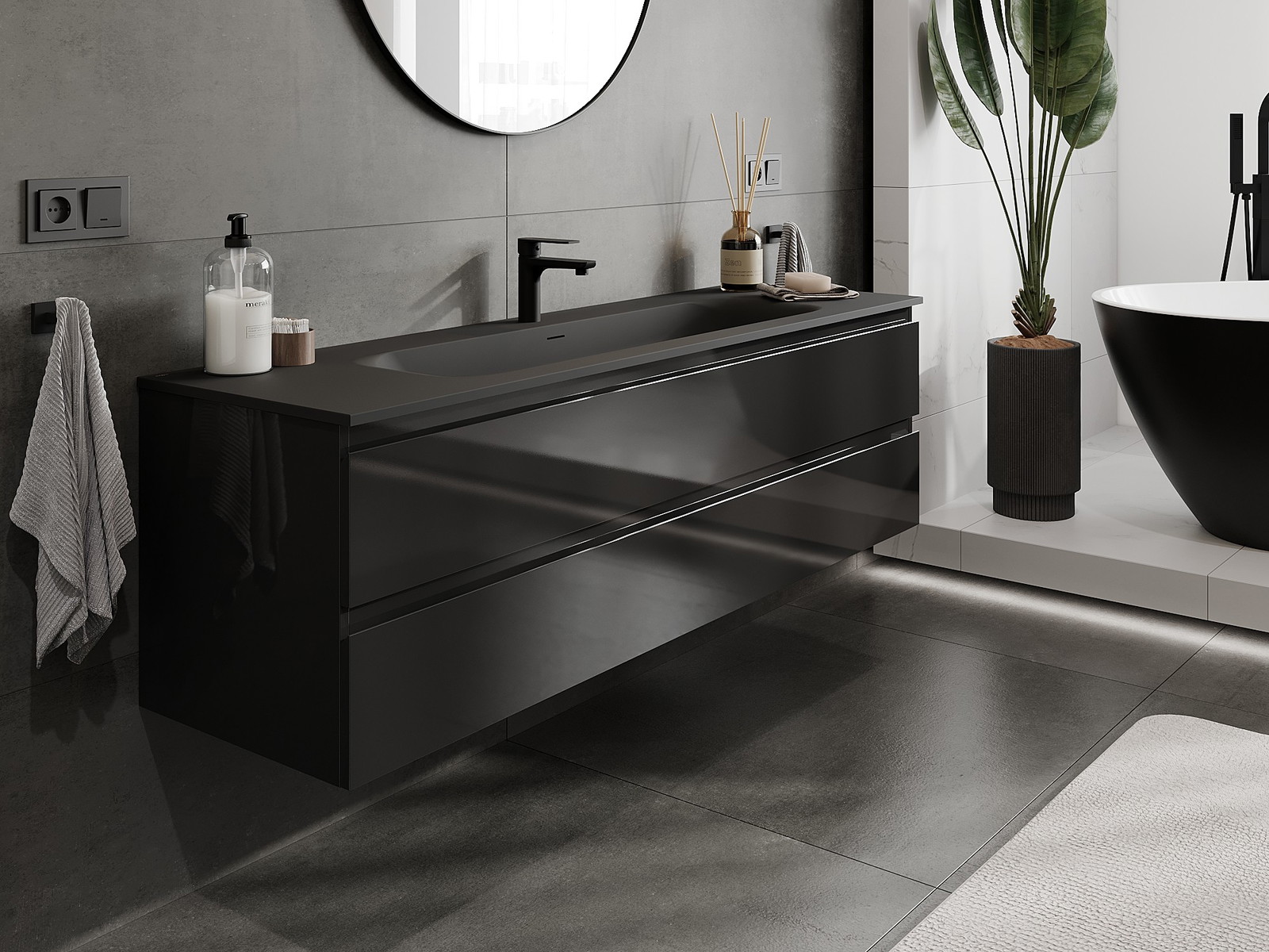 A moduláris fürdőszobabútorainkat különböző színkonfigurációkban lehet kombinálni, lehetővé téve a teljes személyre szabást. Kiválasztható mind az egyes elemek megjelenése, mind pedig funkciói, ami lehetővé teszi a bútorok személyes stílus- és használati preferenciákhoz való igazítását.