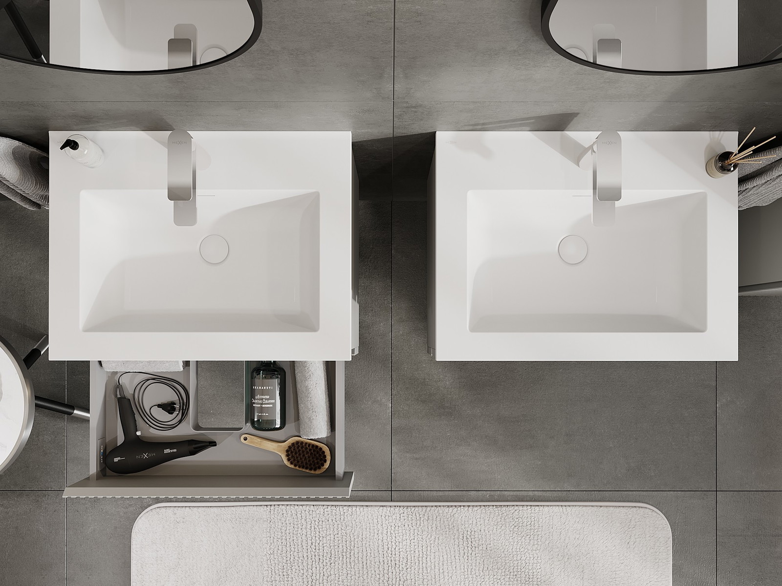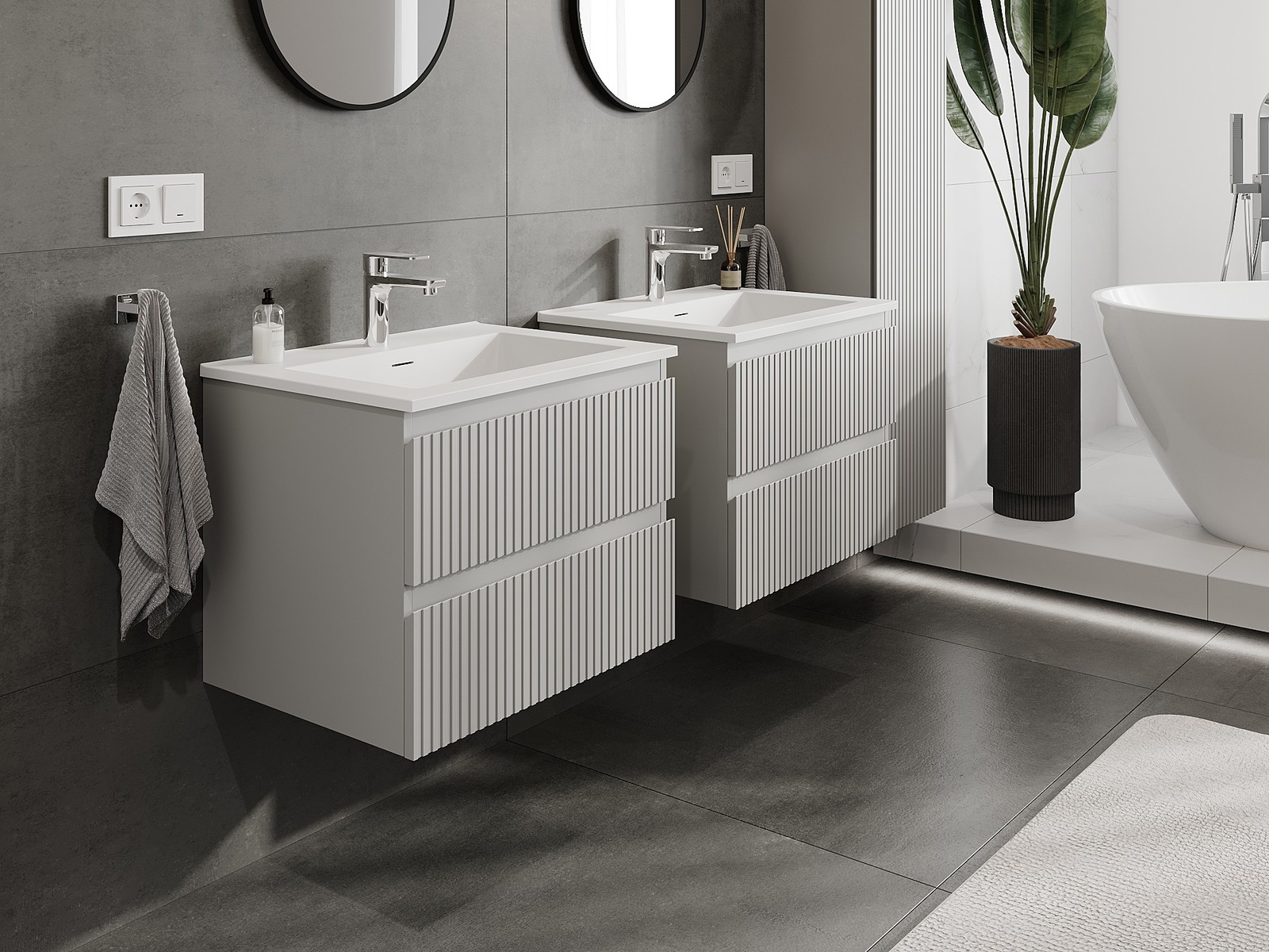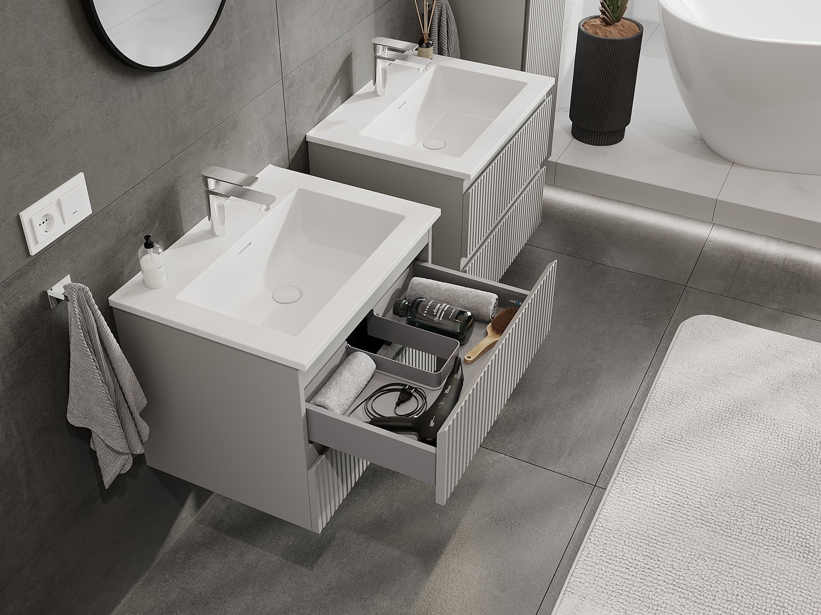A moduláris fürdőszobabútorainkat különböző színkonfigurációkban lehet kombinálni, lehetővé téve a teljes személyre szabást. Kiválasztható mind az egyes elemek megjelenése, mind pedig funkciói, ami lehetővé teszi a bútorok személyes stílus- és használati preferenciákhoz való igazítását.