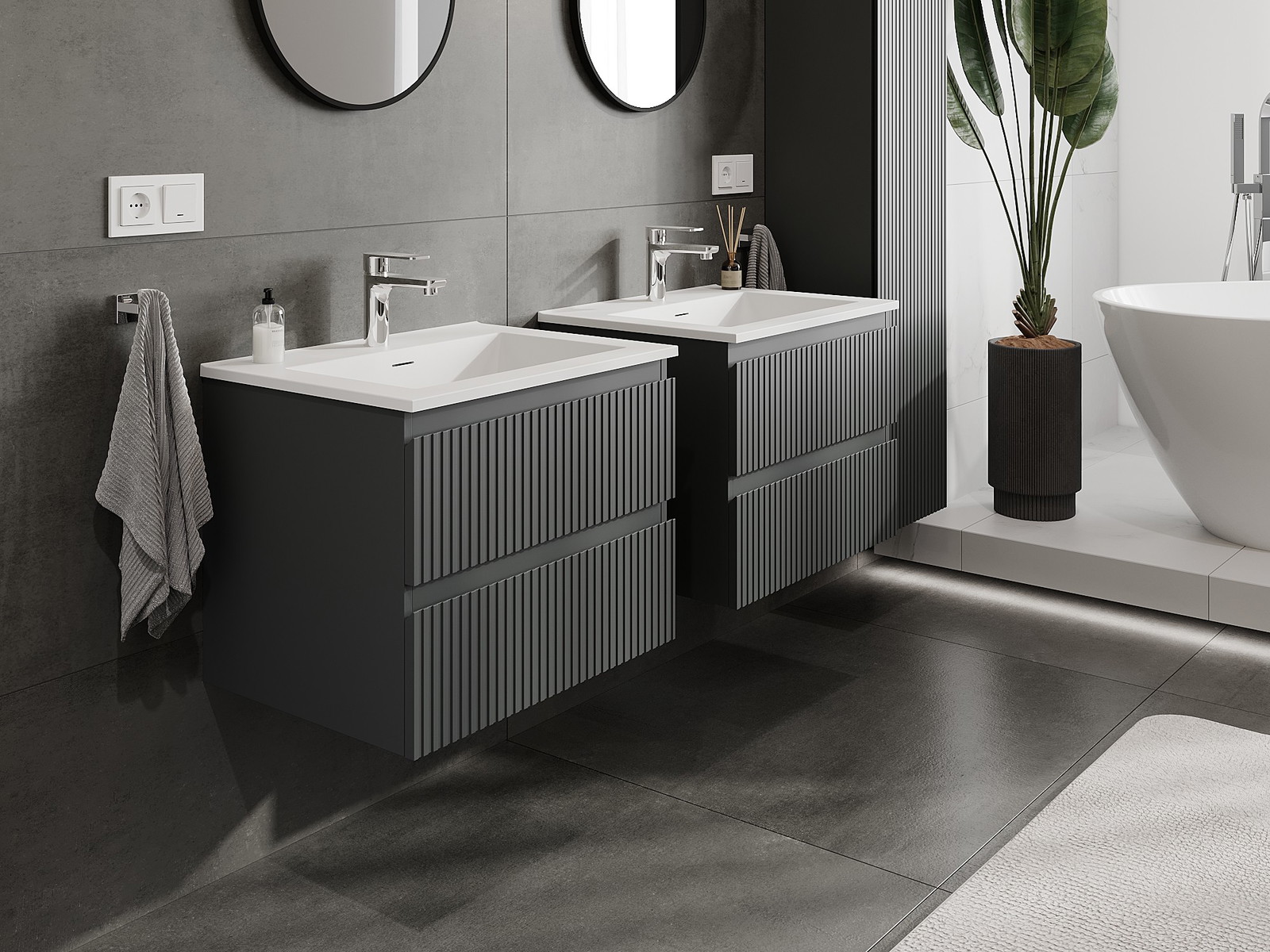 A moduláris fürdőszobabútorainkat különböző színkonfigurációkban lehet kombinálni, lehetővé téve a teljes személyre szabást. Kiválasztható mind az egyes elemek megjelenése, mind pedig funkciói, ami lehetővé teszi a bútorok személyes stílus- és használati preferenciákhoz való igazítását.