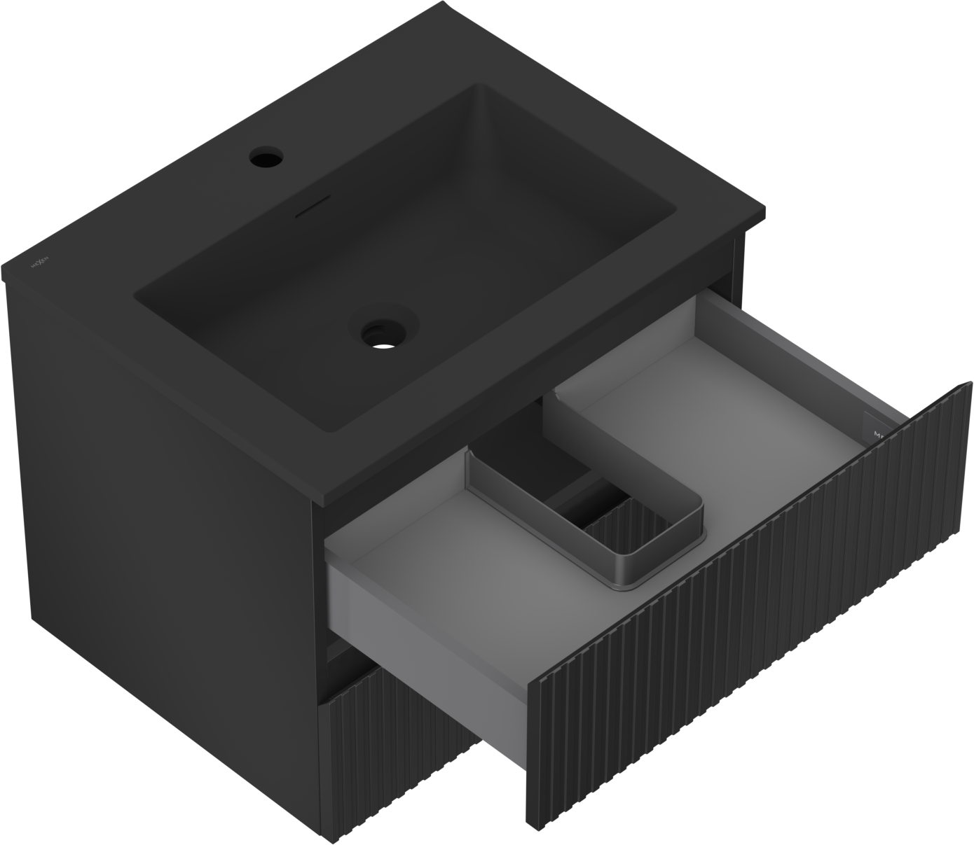 Mexen Rivel fürdőszobai szekrény 60 cm mosdókagylóval Otis, 2 fiókos, barázdált, fekete matt - 91A20-06047-2-BFF71-W18M71