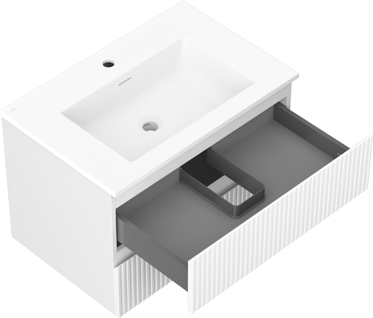 Mexen Rivel 70 cm-es fürdőszobai szekrény Otis mosdóval, 2 fiókos, bordázott, fehér matt - 91A20-07047-2-BFF01-W18M01