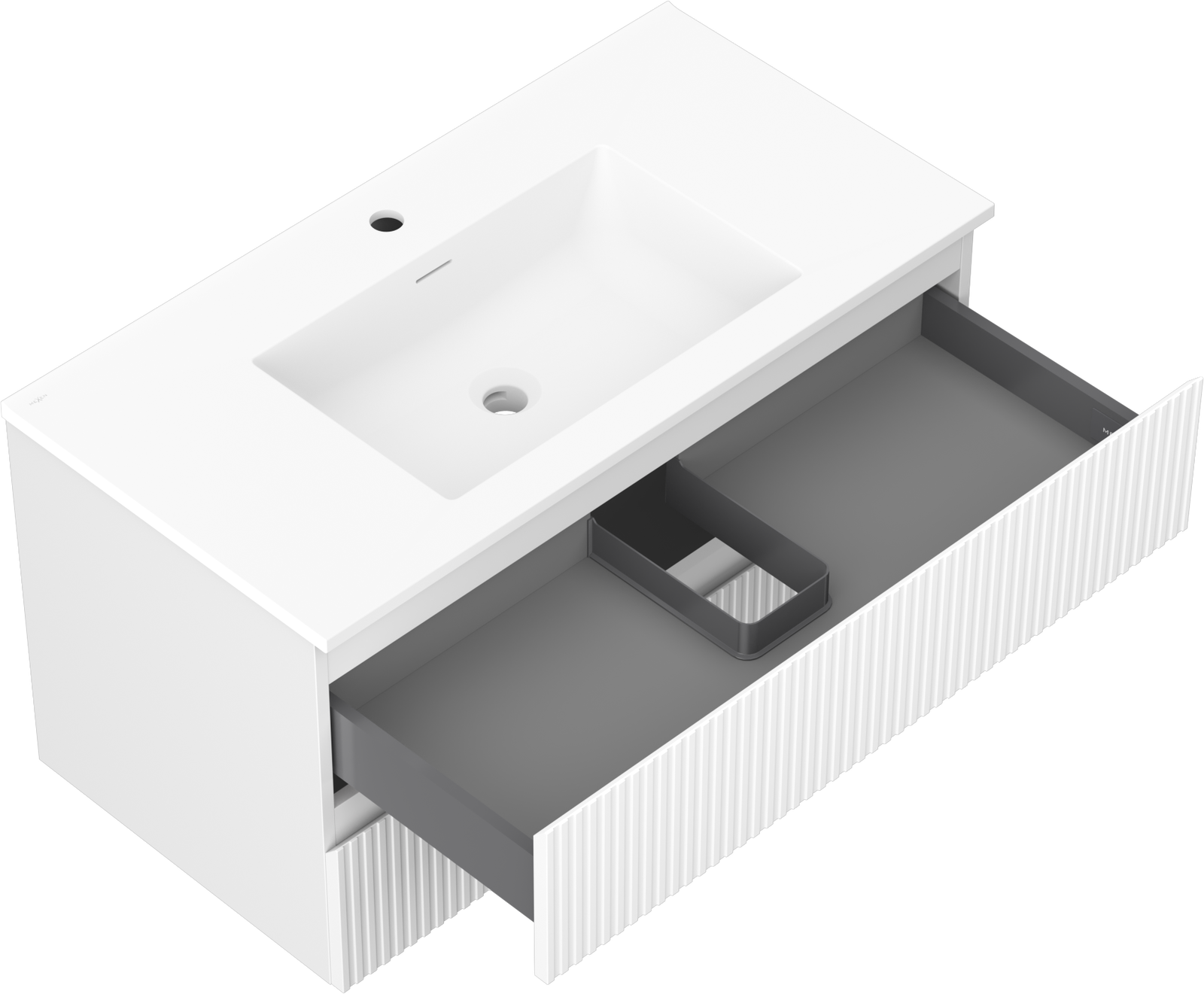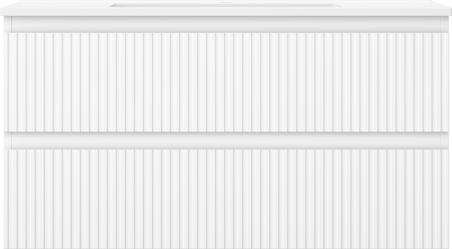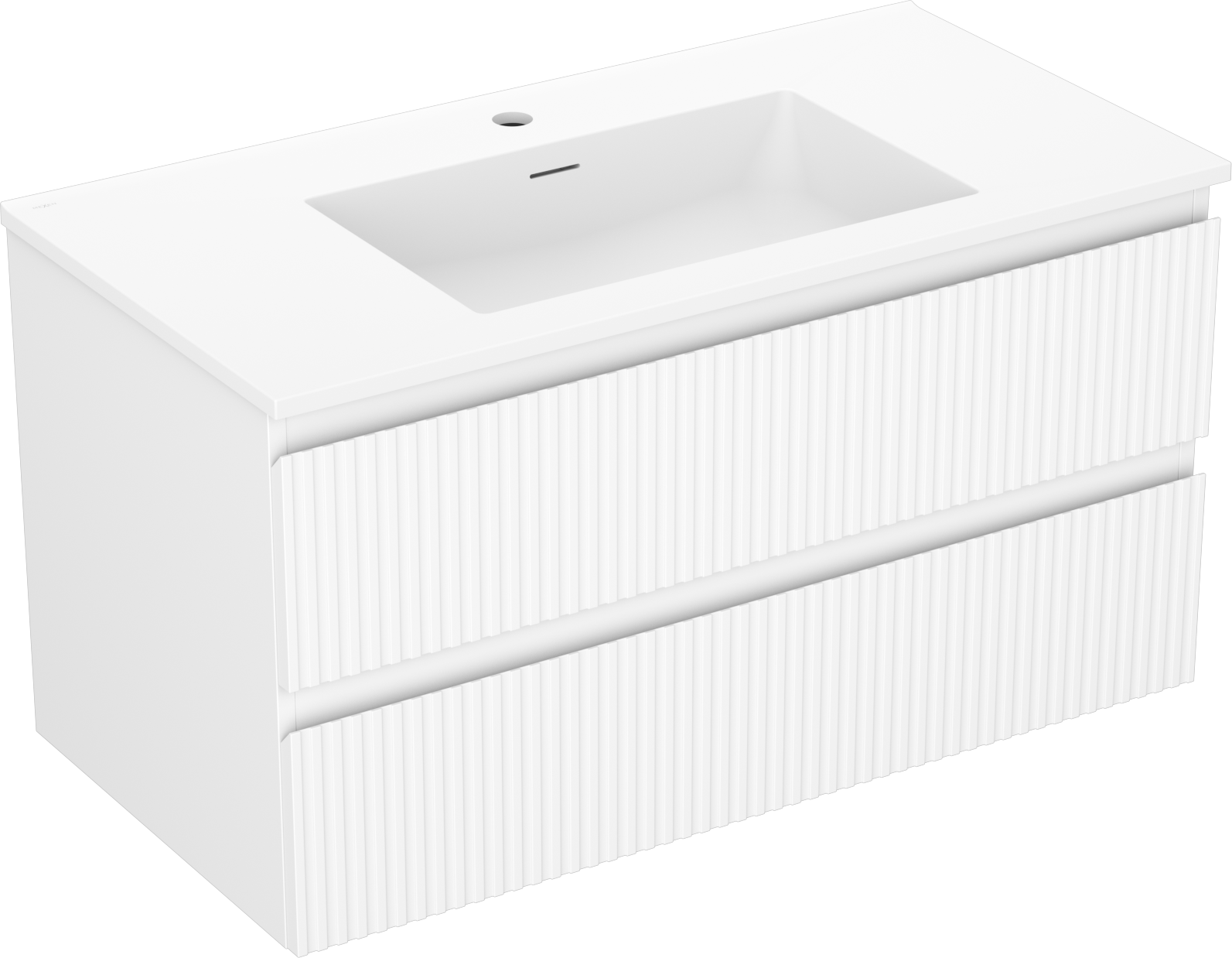 Mexen Rivel 90 cm-es fürdőszobai szekrény Otis mosdóval, 2 fiók, bordázott, fehér matt - 91A20-09047-2-BFF01-W18M01
