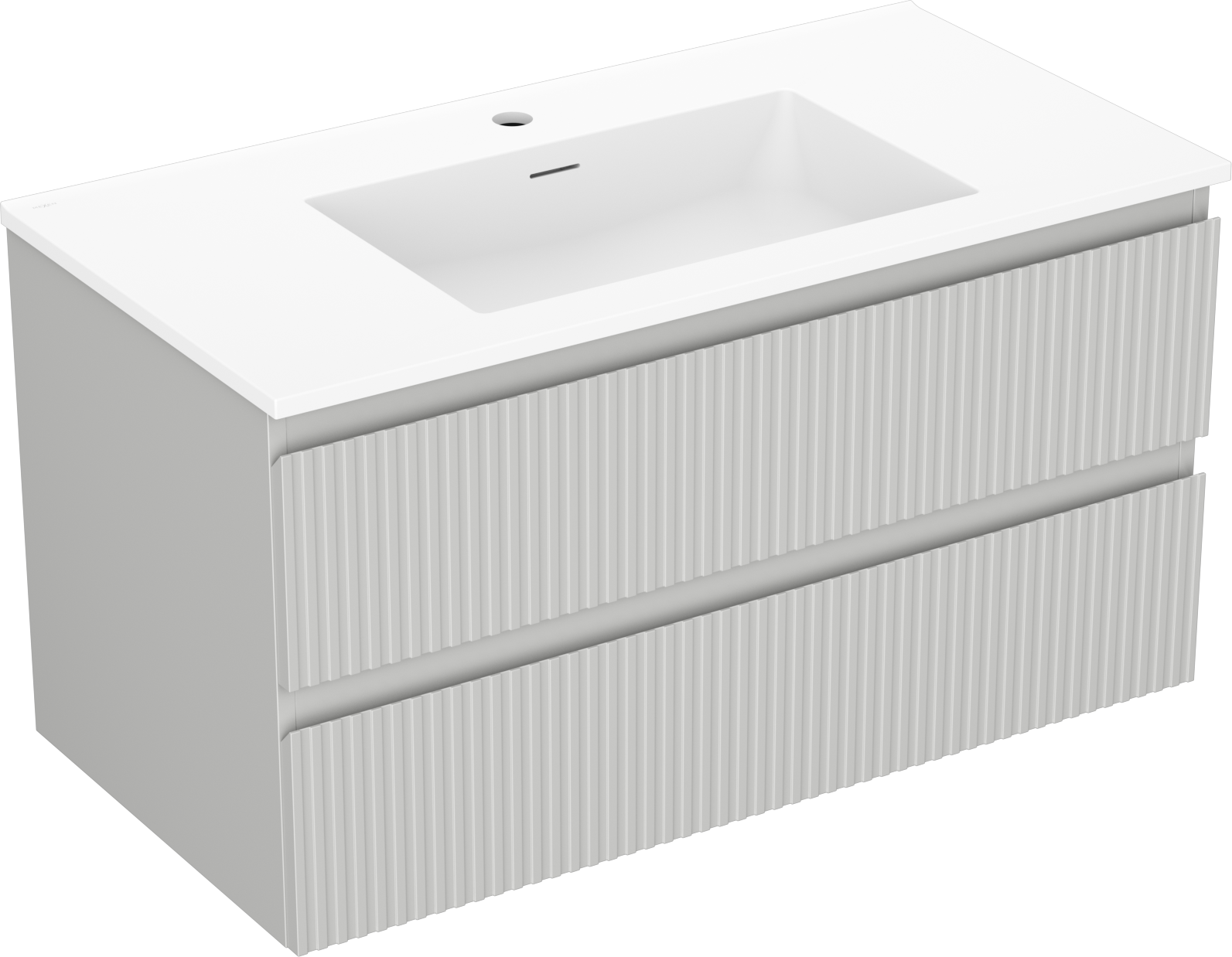 Mexen Rivel 90 cm-es fürdőszobaszekrény Otis mosdóval, 2 fiók, bordázott, szürke matt/fehér matt - 91A20-09047-2-BFF62-W18M01
