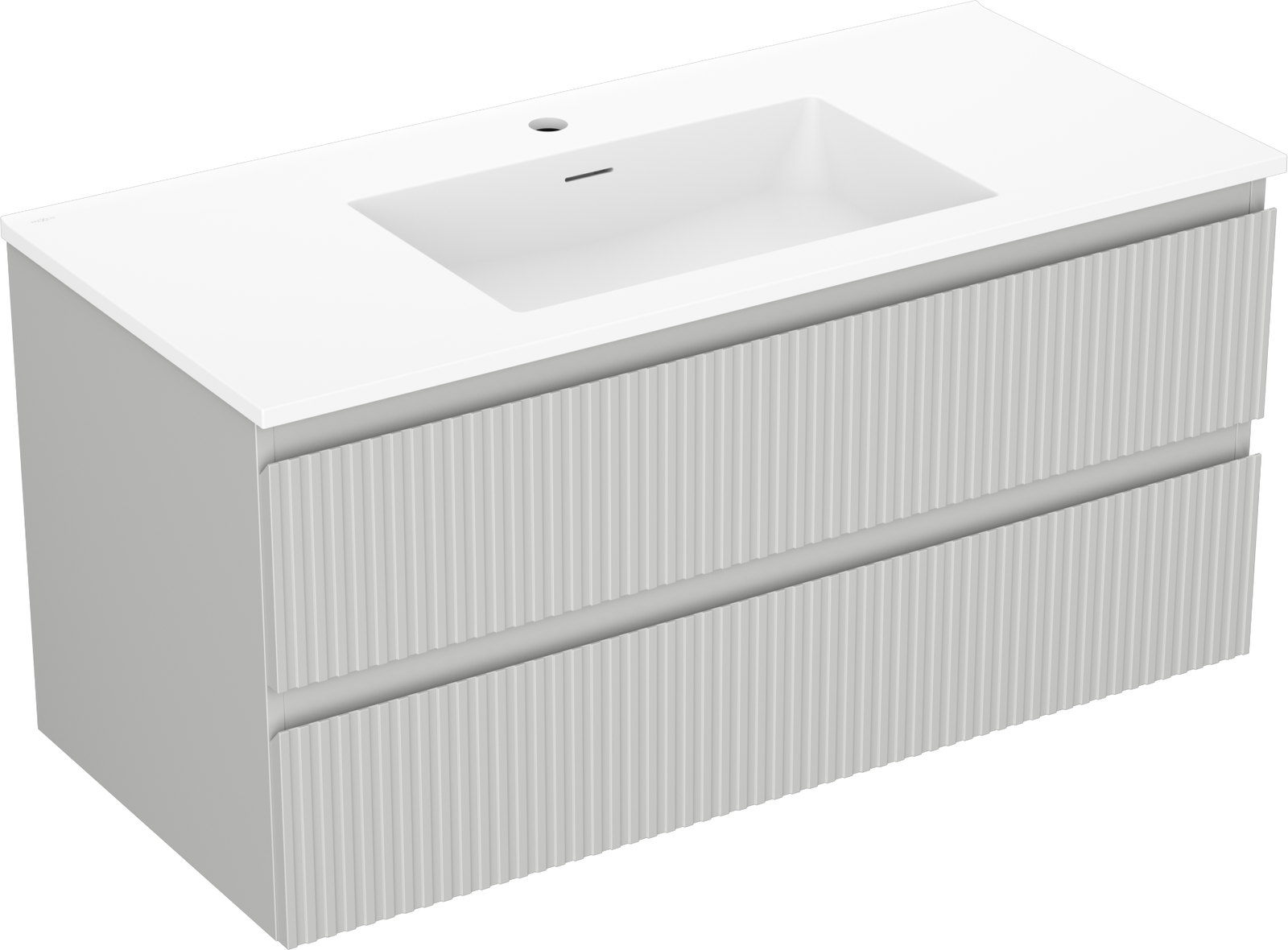 Mexen Rivel fürdőszobai szekrény 100 cm mosdóval, Otis, 2 fiók, bordázott, szürke matt/fehér matt - 91A20-10047-2-BFF62-W18M01
