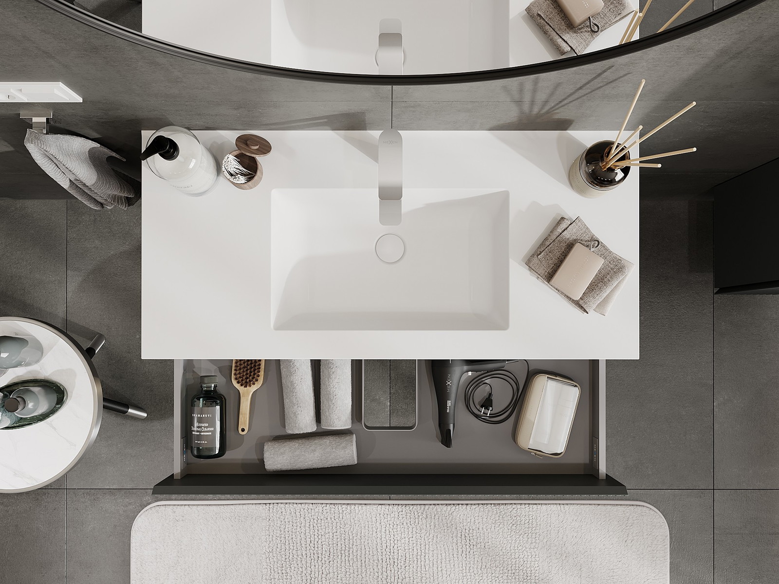 A moduláris fürdőszobabútorainkat különböző színkonfigurációkban lehet kombinálni, lehetővé téve a teljes személyre szabást. Kiválasztható mind az egyes elemek megjelenése, mind pedig funkciói, ami lehetővé teszi a bútorok személyes stílus- és használati preferenciákhoz való igazítását.