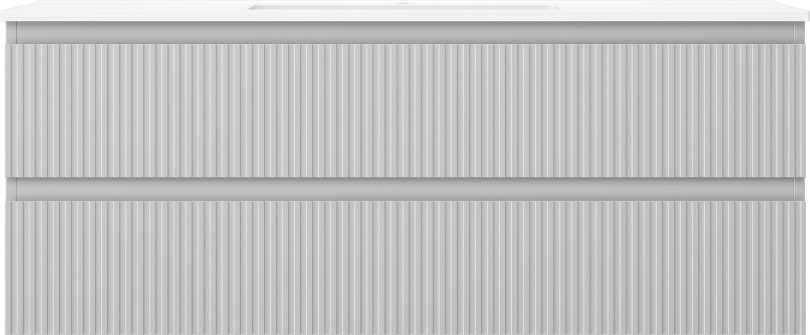 Mexen Rivel Otis 120 cm-es fürdőszobaszekrény mosdókagylóval, 2 fiókos, bordázott, szürke matt/fehér matt -