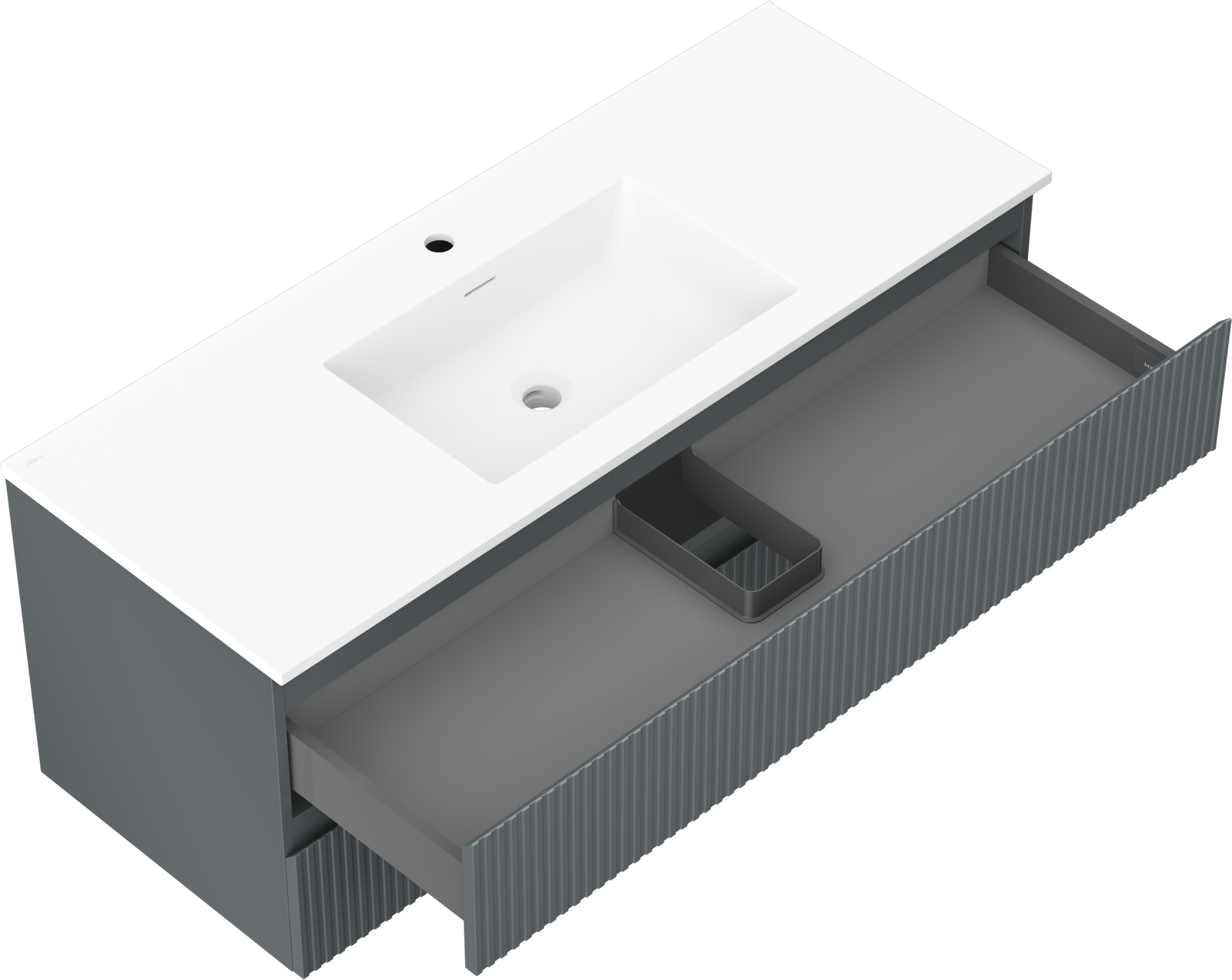 A fiókban lévő kivágás úgy van kialakítva, hogy befogadja a mosdó telepítéseknél szükséges szifont. Ennek köszönhetően a bútor teljesen funkcionálisan felszerelhető anélkül, hogy a fiók terének egy részét fel kellene áldozni a telepítés miatt.