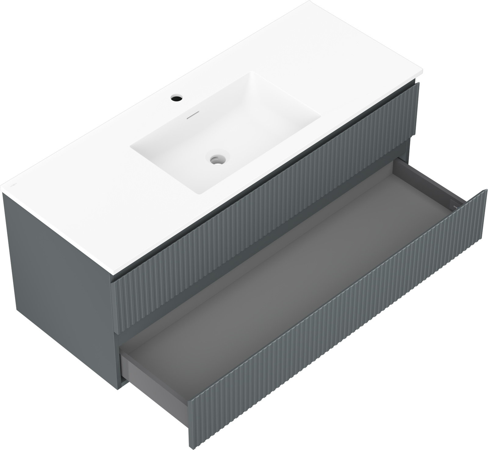 Mexen Rivel Otis 120 cm-es fürdőszobaszekrény mosdóval, 2 fiókos, mart, grafit matt/fehér matt - 91A20-12047-2-BFF66-W18M