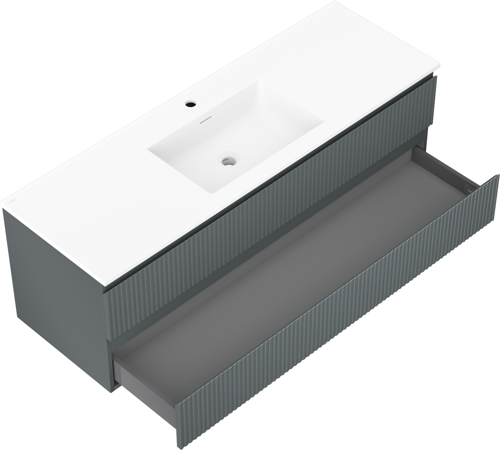 Mexen Rivel 140 cm-es fürdőszobaszekrény mosdóval Otis, 2 fiók, bordázott, grafit matt/fehér matt -