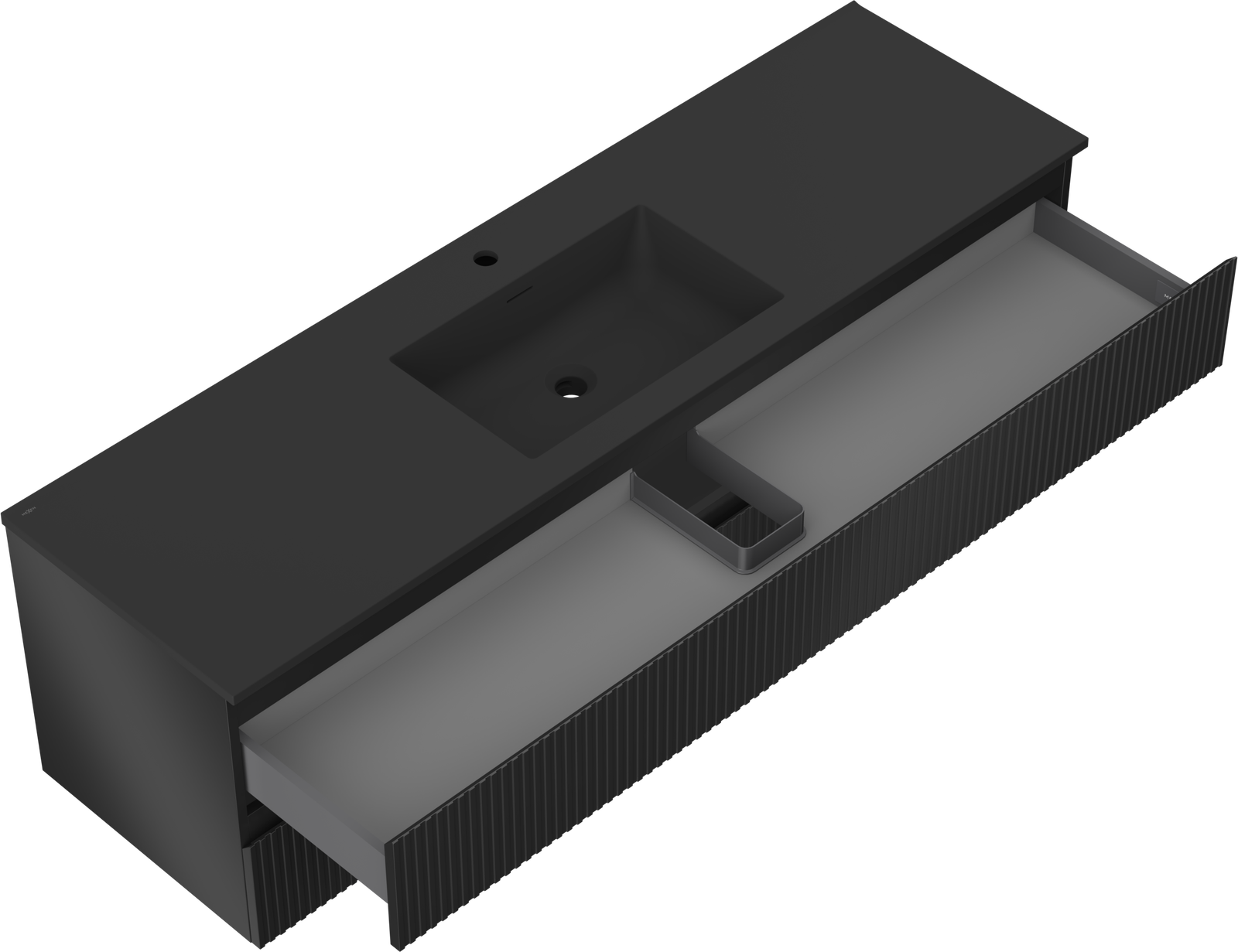 Mexen Rivel 160 cm-es fürdőszobai szekrény Otis mosdóval, 2 fiók, bordázott, fekete matt - 91A20-16047-2-BFF71-W18M71