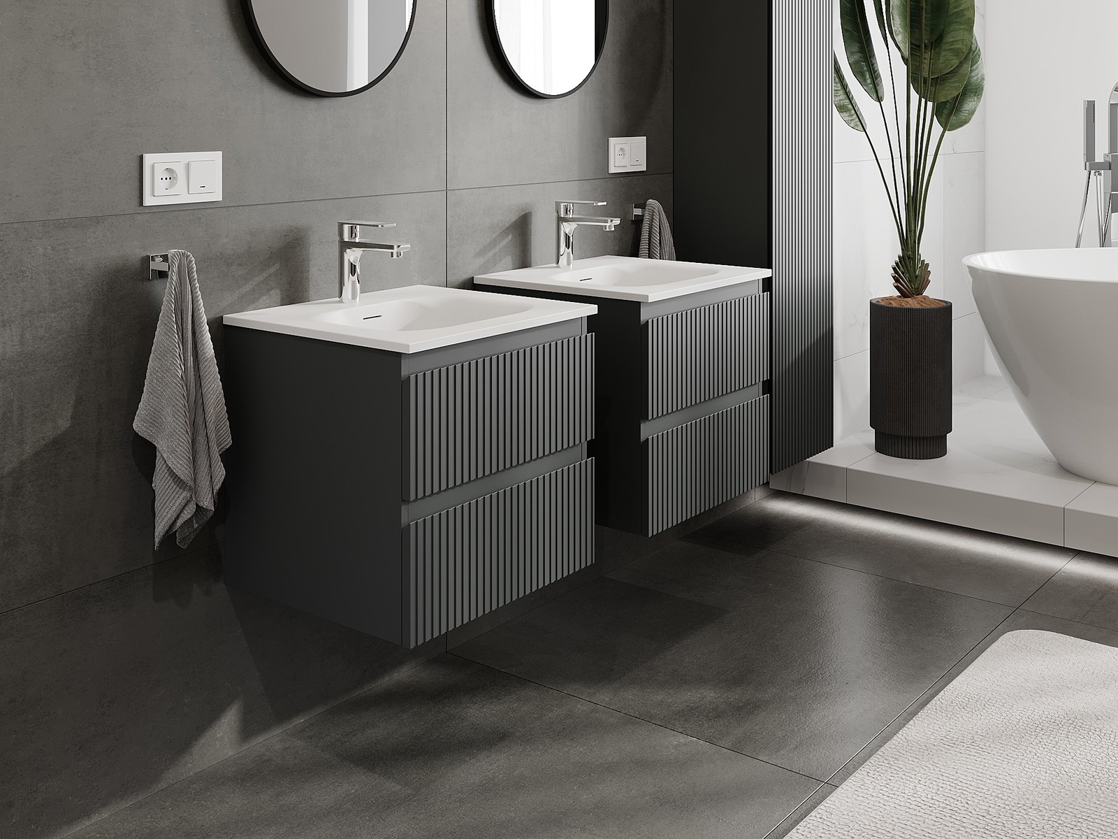 A moduláris fürdőszobabútorainkat különböző színkonfigurációkban lehet kombinálni, lehetővé téve a teljes személyre szabást. Kiválasztható mind az egyes elemek megjelenése, mind pedig funkciói, ami lehetővé teszi a bútorok személyes stílus- és használati preferenciákhoz való igazítását.