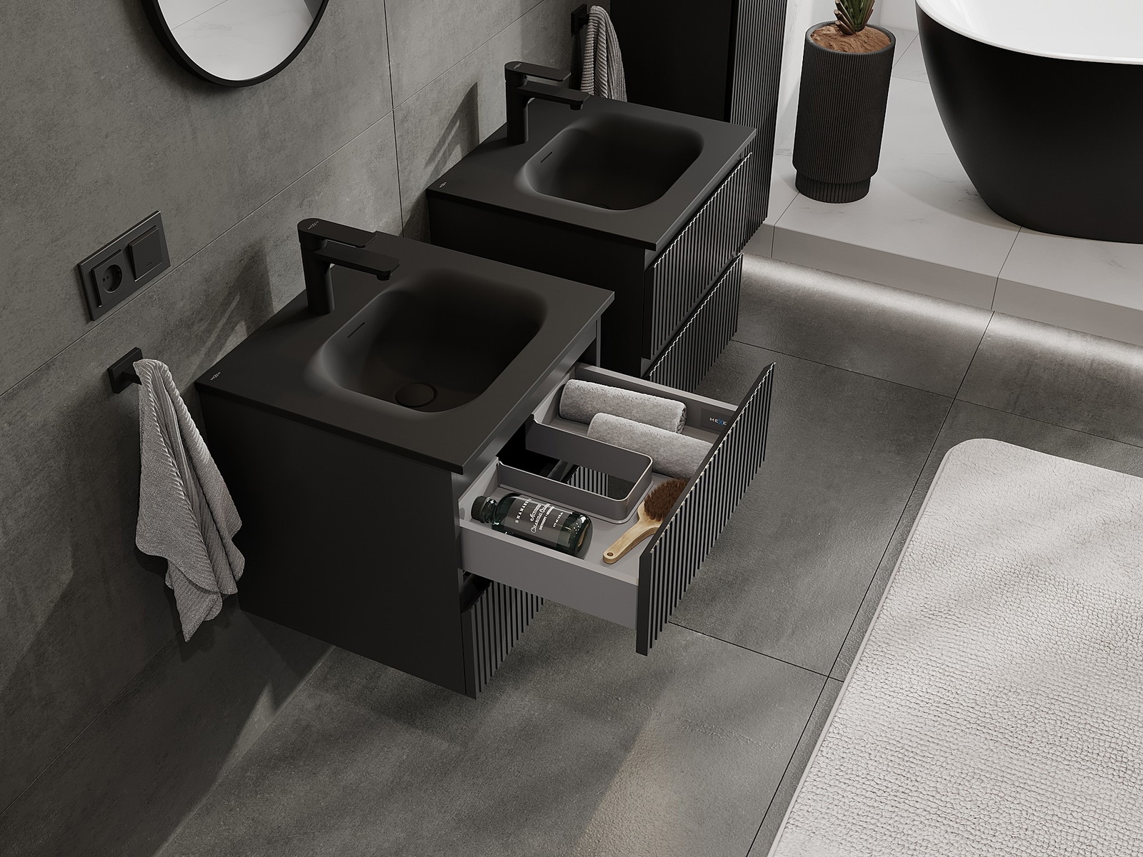 A mosdó színe: Fekete matt