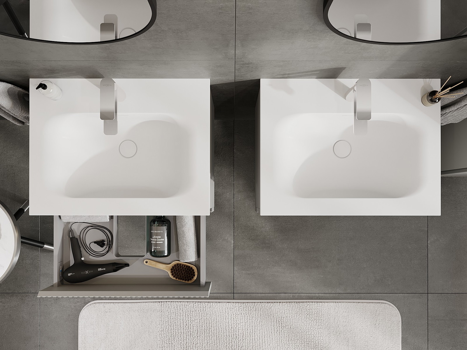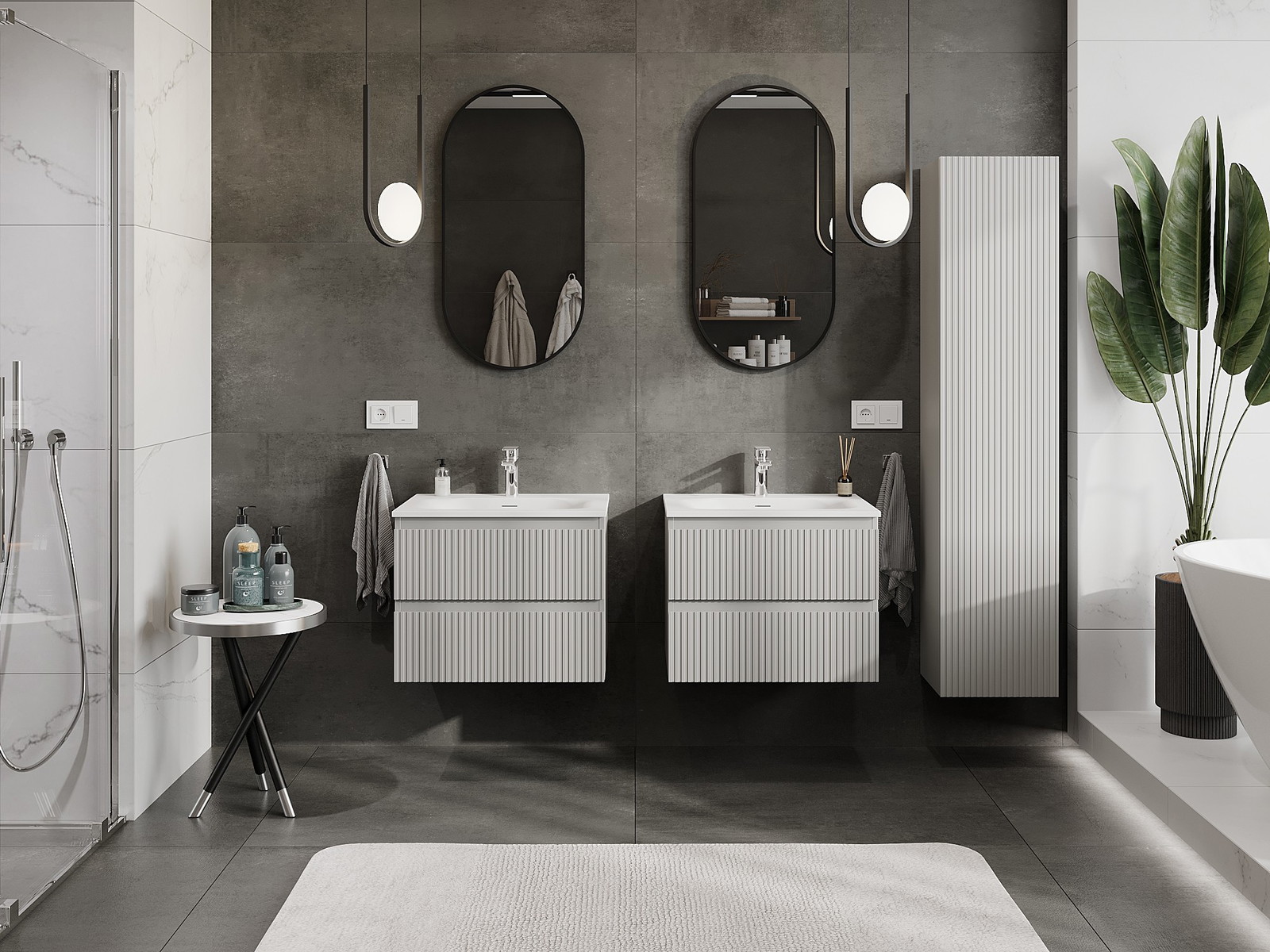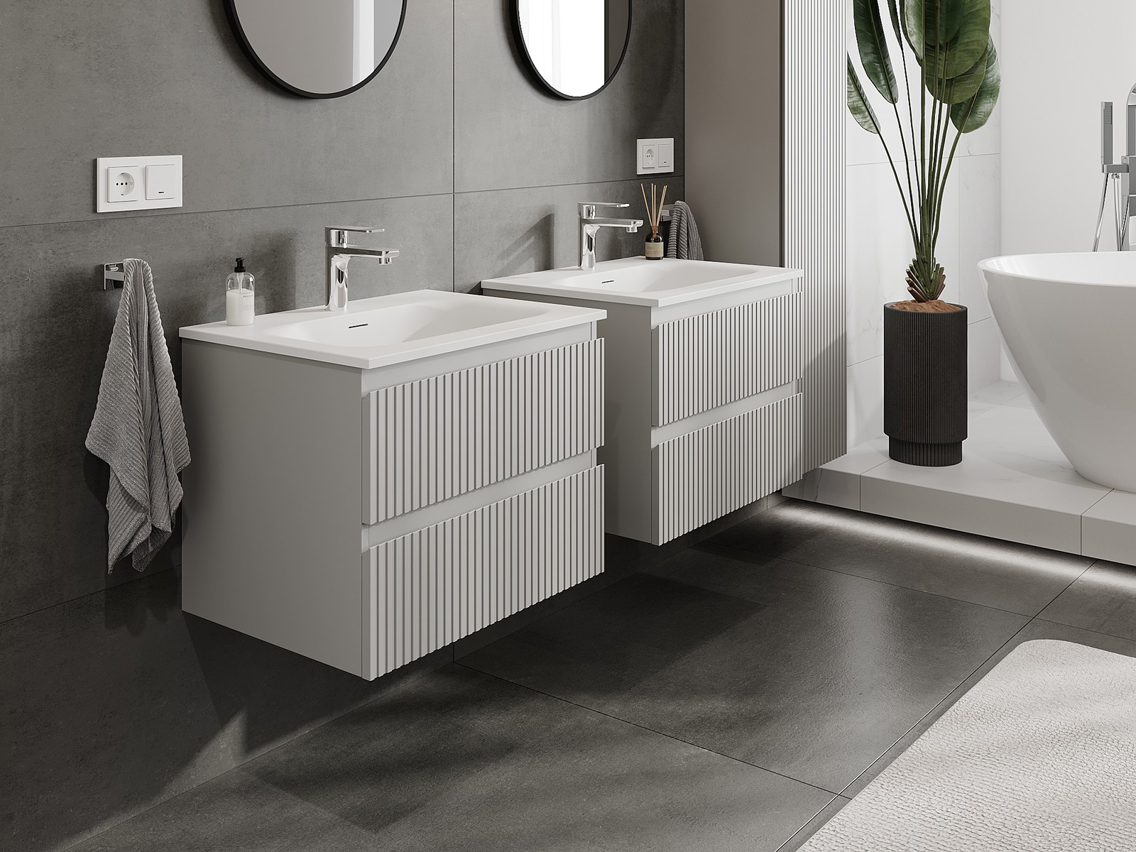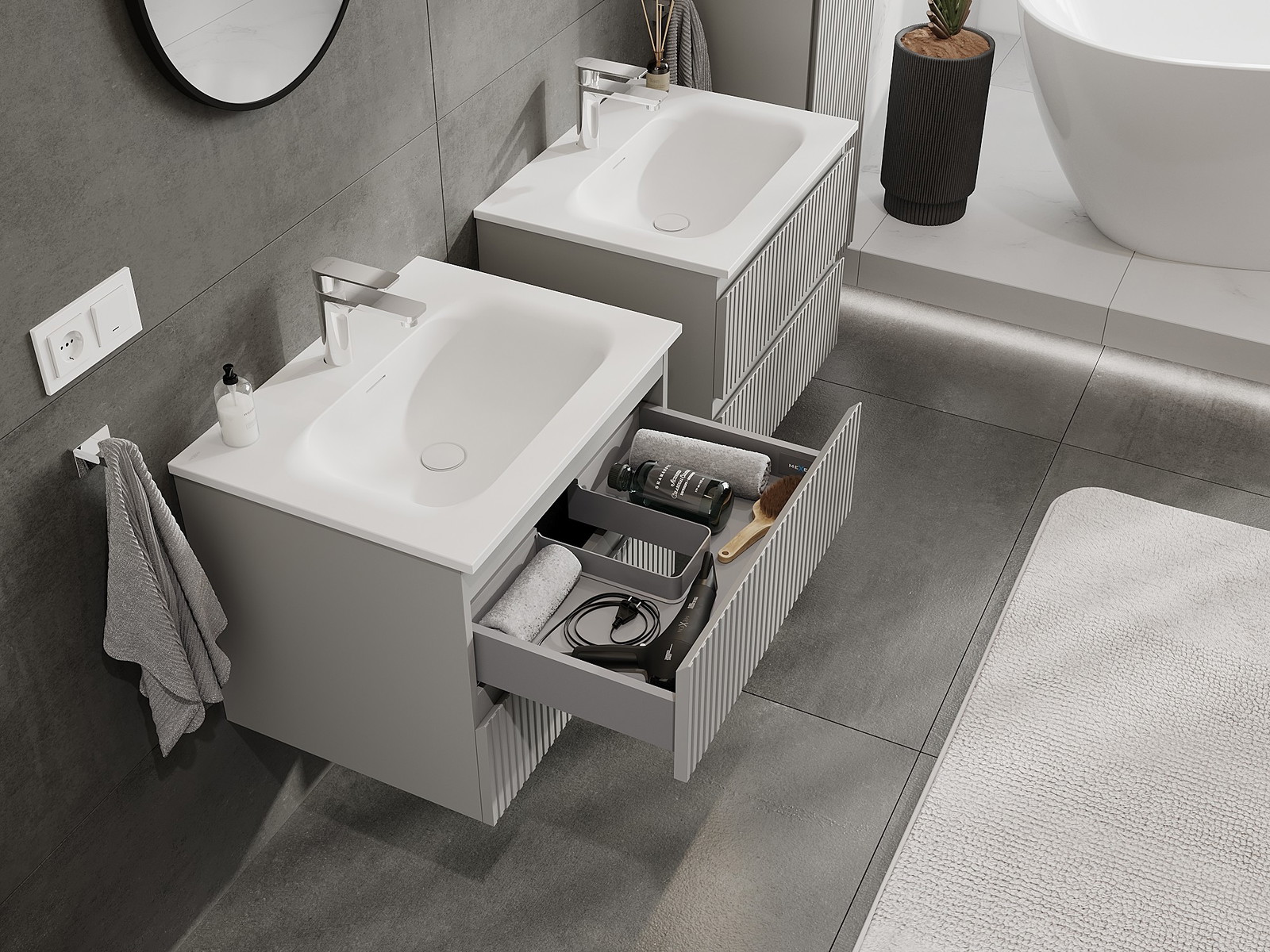 A moduláris fürdőszobabútorainkat különböző színkonfigurációkban lehet kombinálni, lehetővé téve a teljes személyre szabást. Kiválasztható mind az egyes elemek megjelenése, mind pedig funkciói, ami lehetővé teszi a bútorok személyes stílus- és használati preferenciákhoz való igazítását.