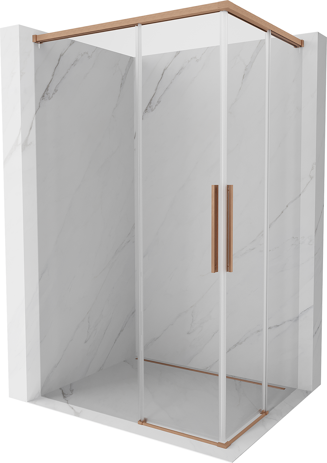Mexen Rox Duo tolóajtós zuhanykabin 90 x 75 cm, átlátszó, kefélt réz - 8C2D-090-075-65-00