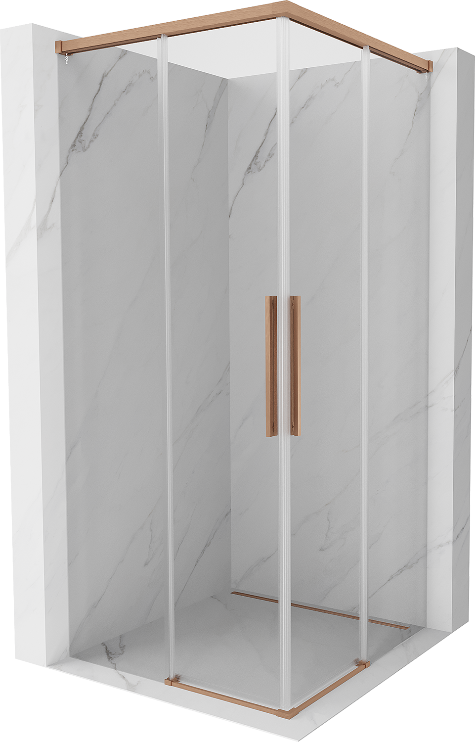 Mexen Rox Duo tolóajtós zuhanykabin 95 x 95 cm, áttetsző, kefélt réz - 8C2D-095-095-65-00
