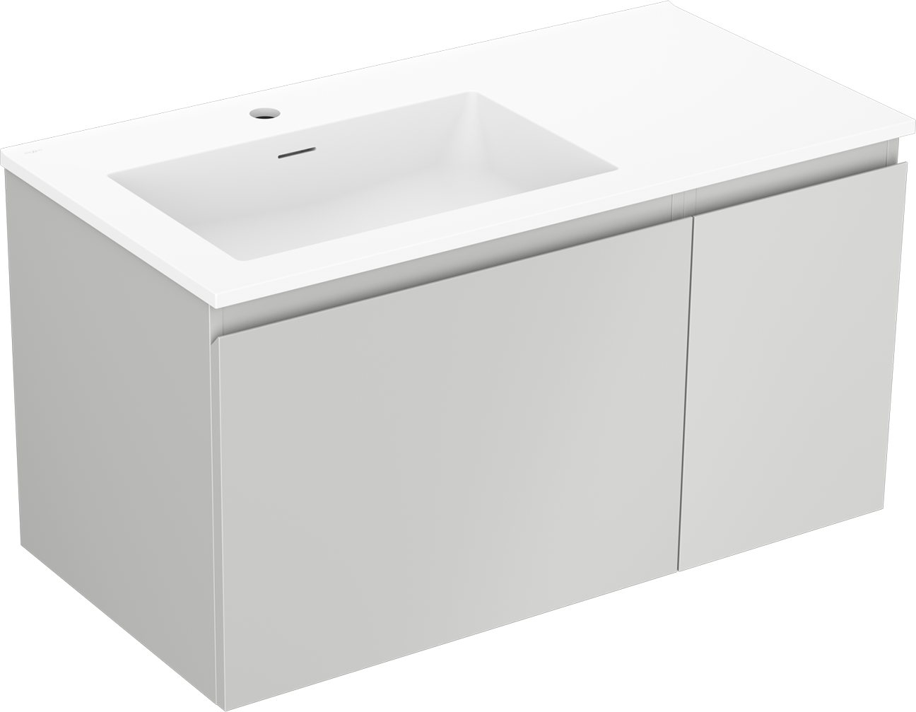 Mexen Orio 90 cm-es fürdőszobai szekrény Otis bal oldali mosdóval, 1S, 1D, szürke matt/fehér matt - 91A13-09047-3-BBFF62-W18L01