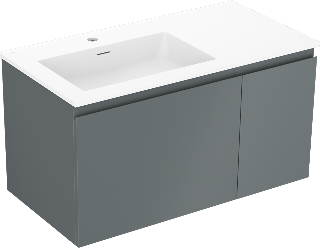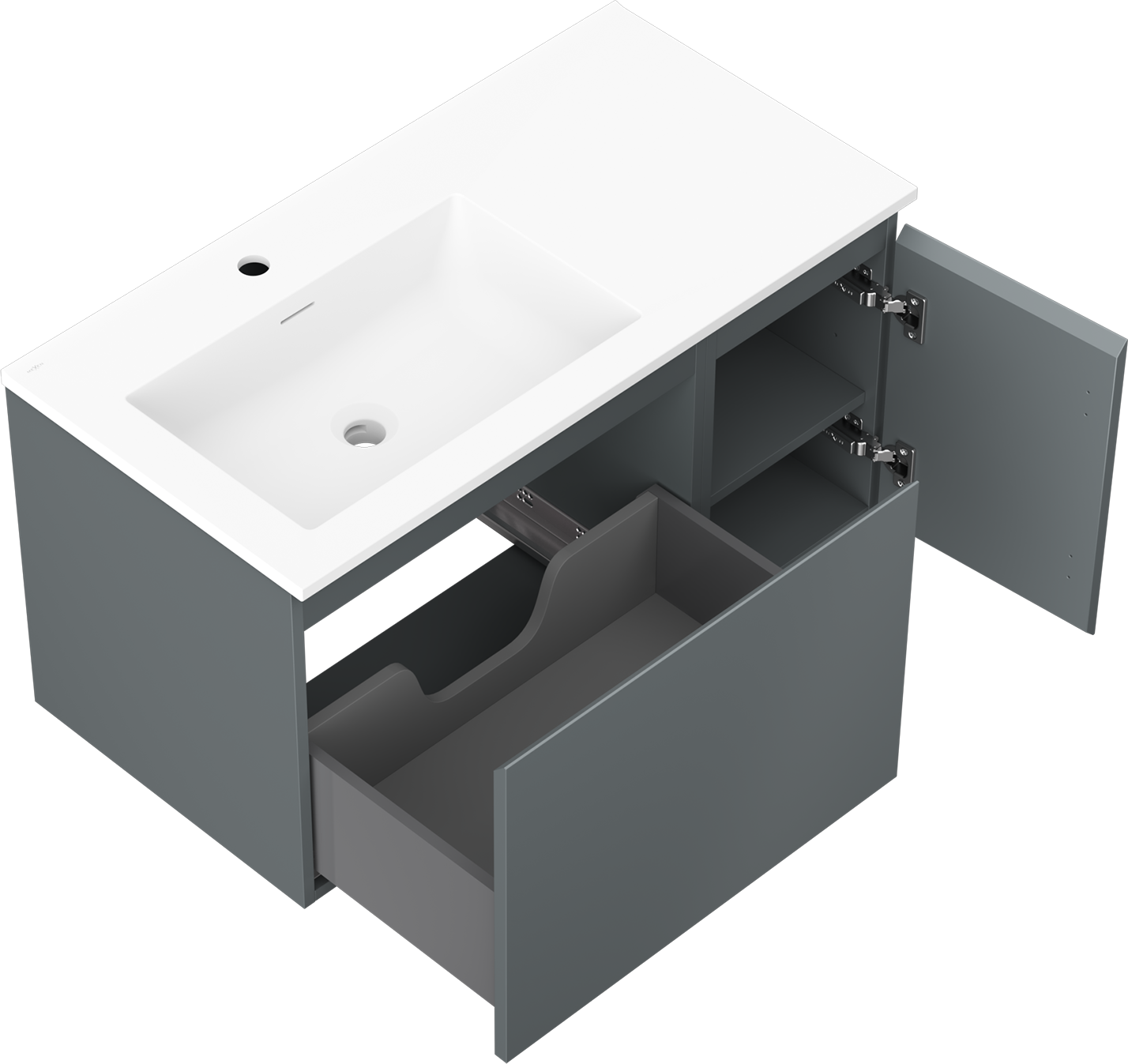 Mexen Orio 90 cm-es fürdőszobai szekrény Otis bal oldali mosdóval, 1S, 1D, grafit matt/fehér matt - 91A13-09047-3-BBFF66-W18L01