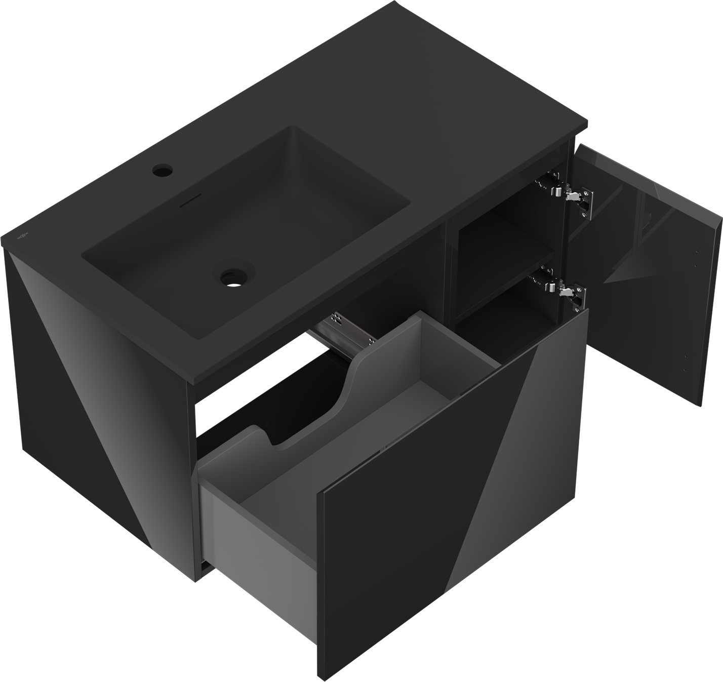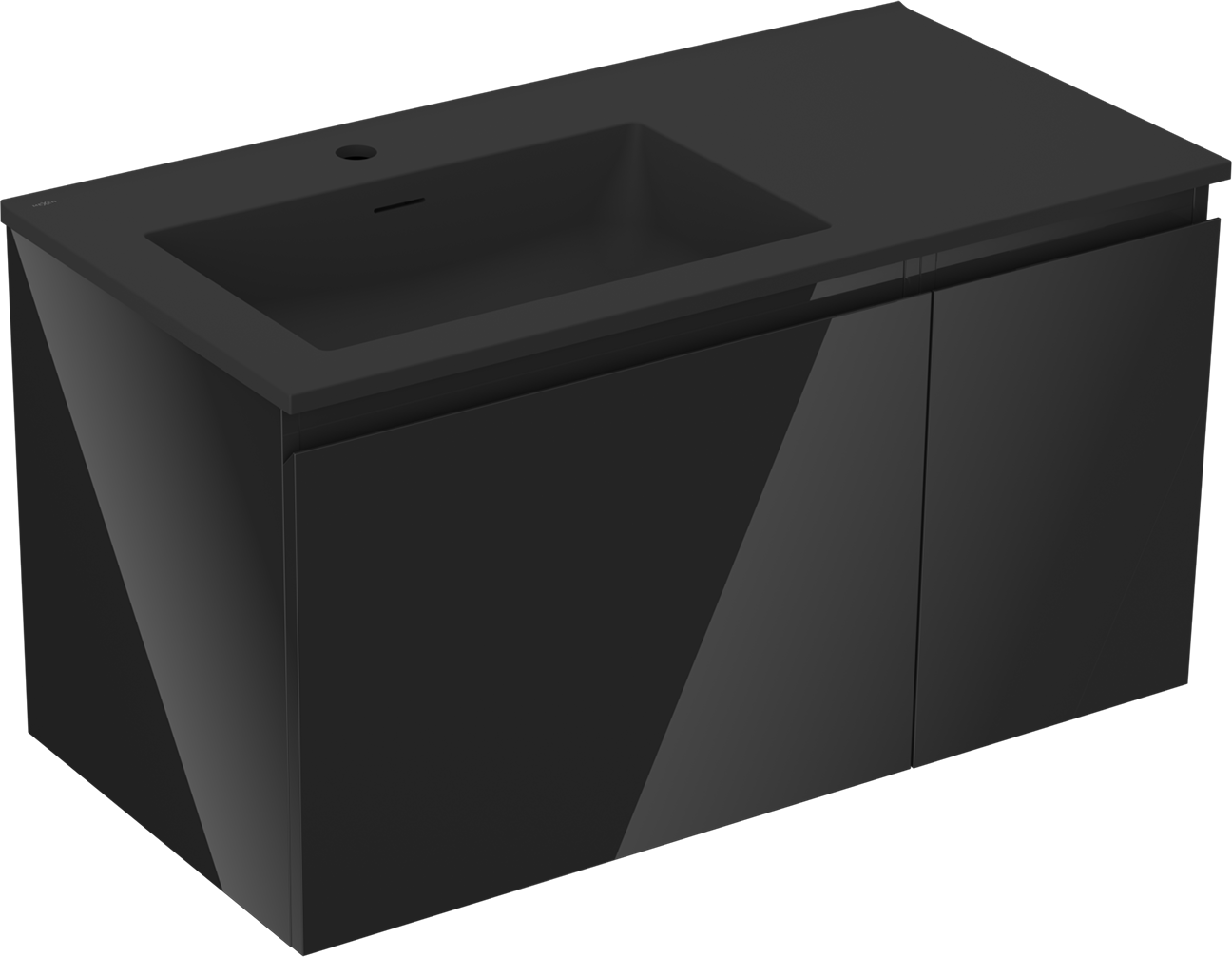 Mexen Orio Otis 90 cm-es fürdőszobai szekrény mosdóval, bal oldali, 1 fiókos, 1 ajtós, fekete fényes/fekete matt