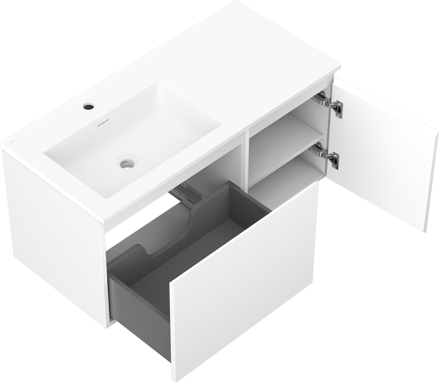 Mexen Orio fürdőszobai szekrény 100 cm mosdóval Otis bal, 1S, 1D, fehér matt - 91A13-10047-3-BBFF01-W18L01