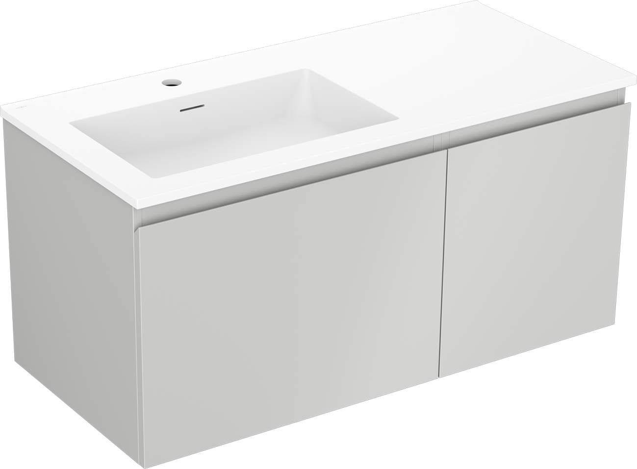 Mexen Orio 100 cm-es fürdőszobaszekrény Otis bal oldali mosdóval, 1S, 1D, szürke matt/fehér matt